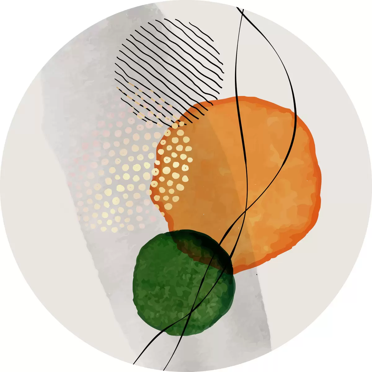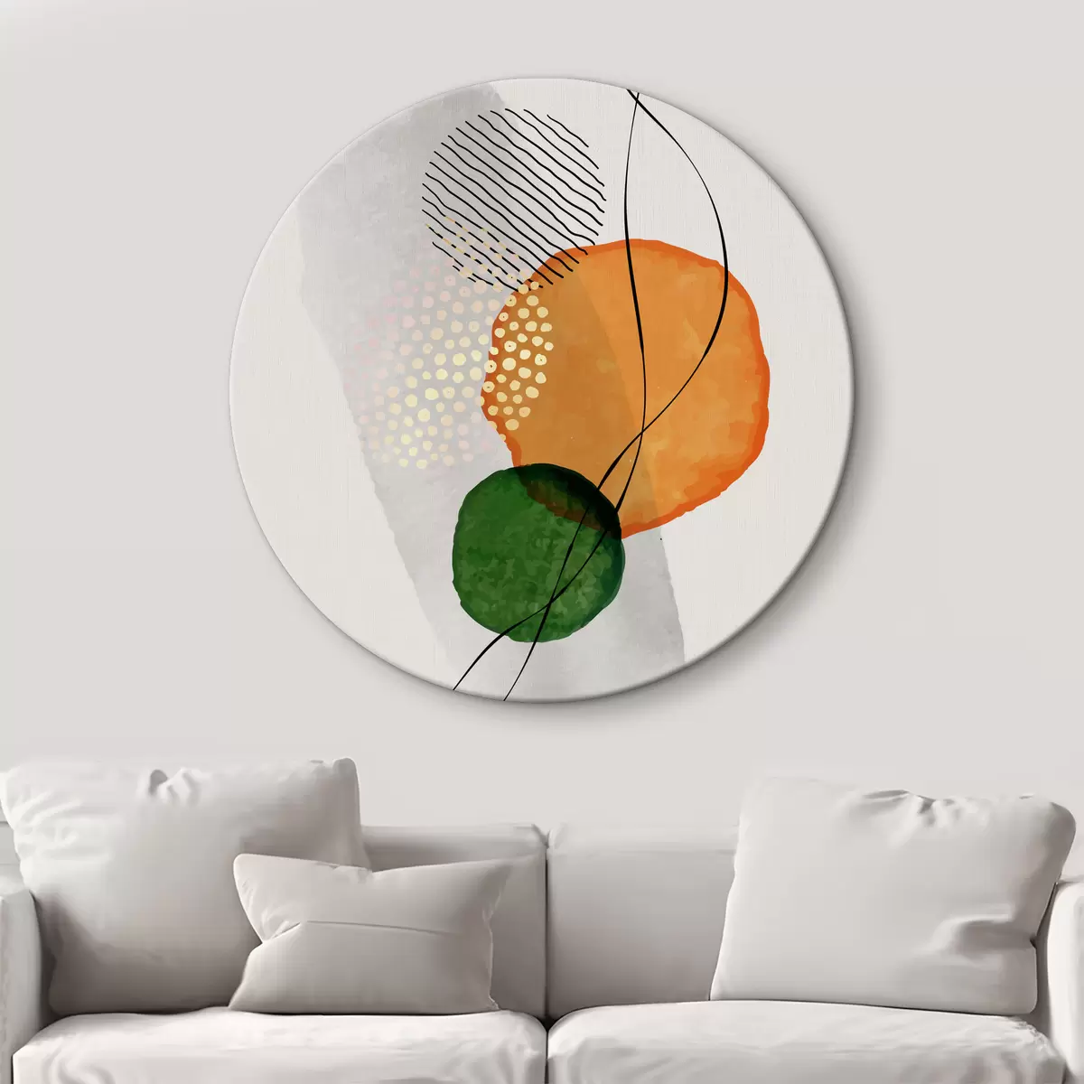 Ronde schilderijen Abstracte harmonie: Cirkels, lijnen en een levendige stroom r35932