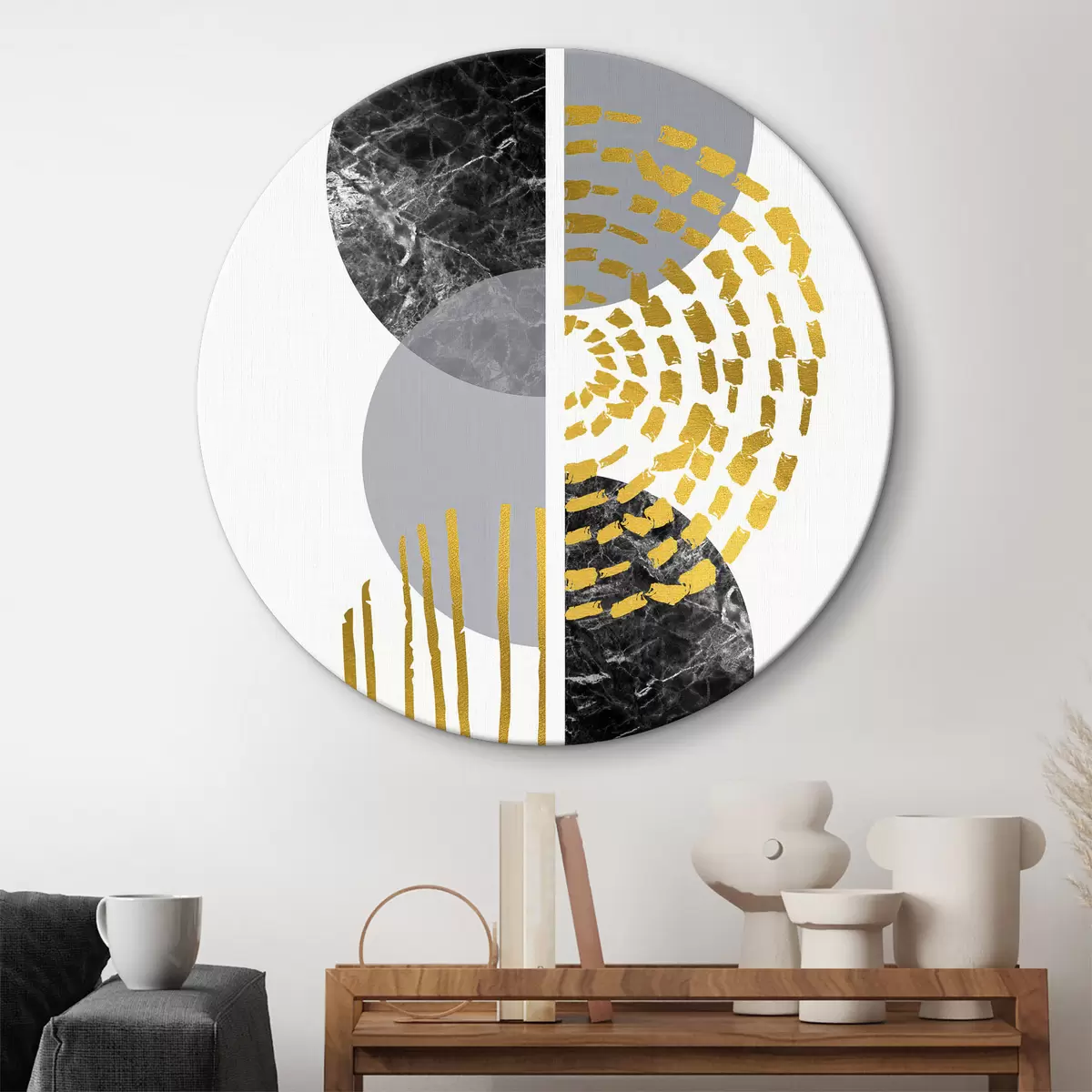 Ronde schilderijen Dynamiek van marmer: Contrast van vormen en patronen r35942