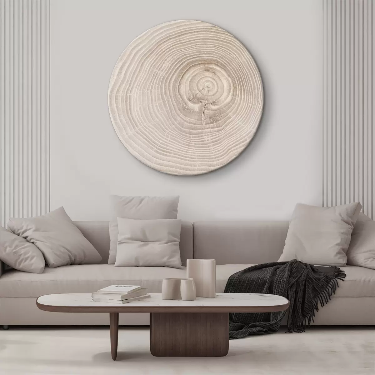 Ronde schilderijen Een ring van gezaagd hout in delicate tinten r36005