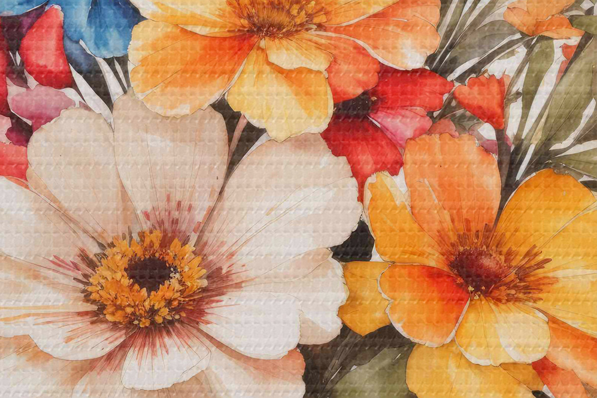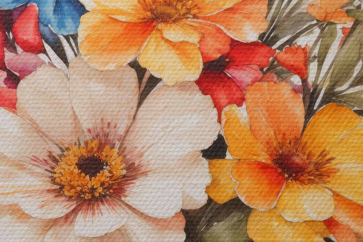 Afbeelding Aquarelboeket van roze, gele, blauwe en rode bloemen Nr r36121