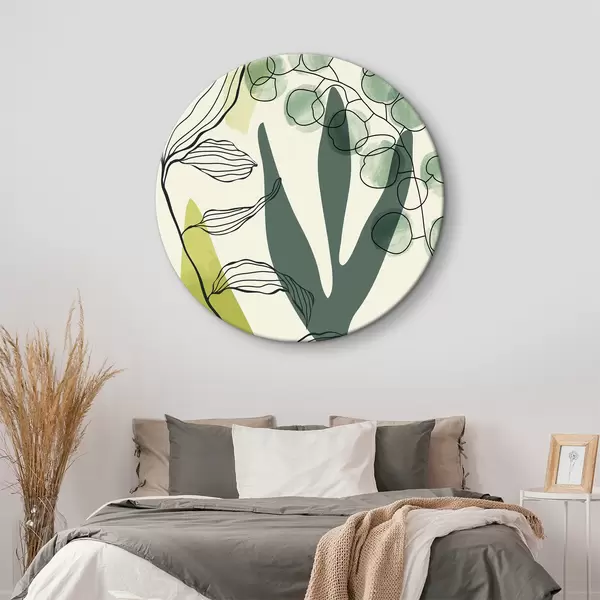 Ronde schilderijen Abstracte aquarel bloemen en bladeren r36133