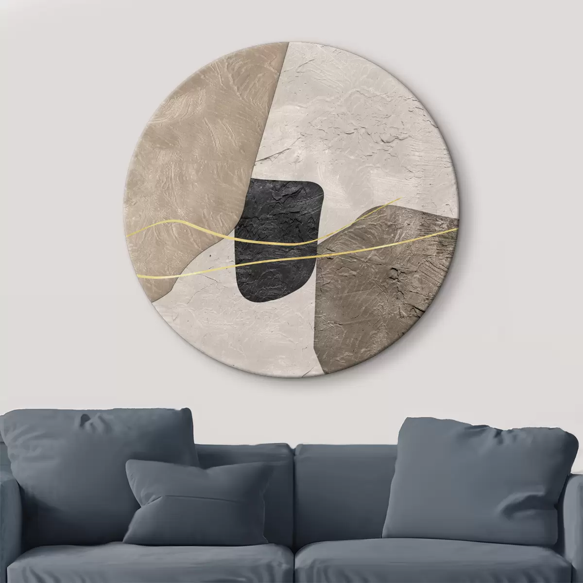 Ronde schilderijen Abstracte kunst in beige tinten r36154