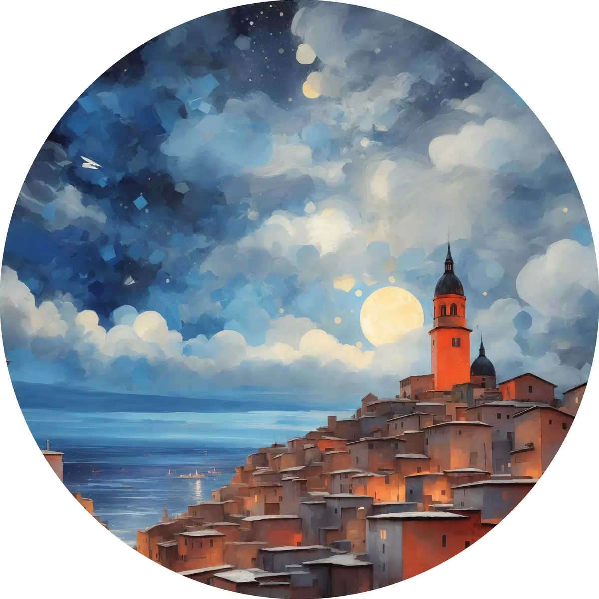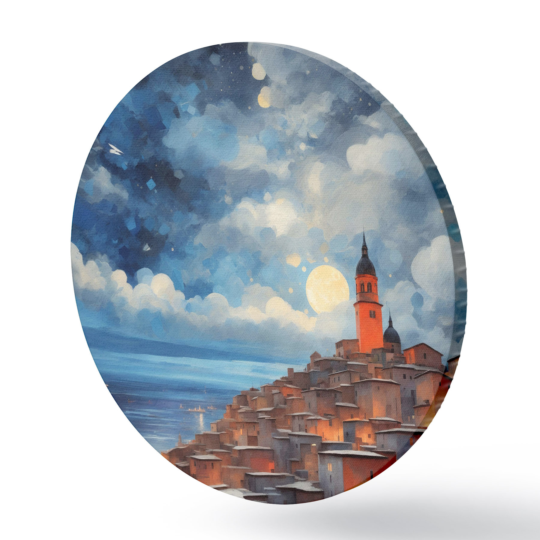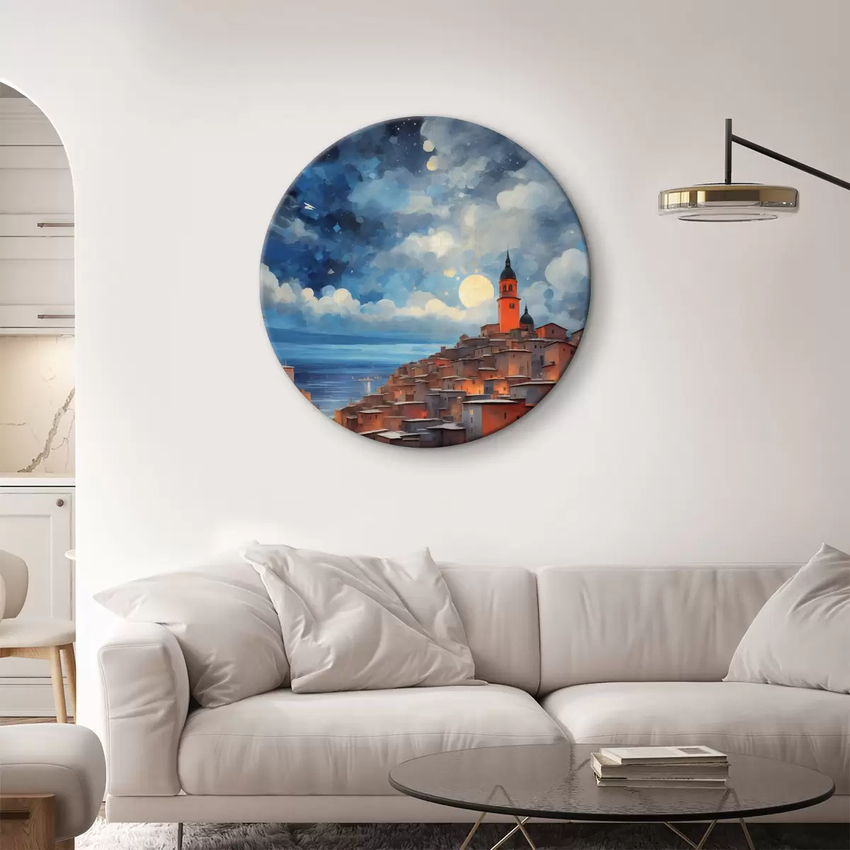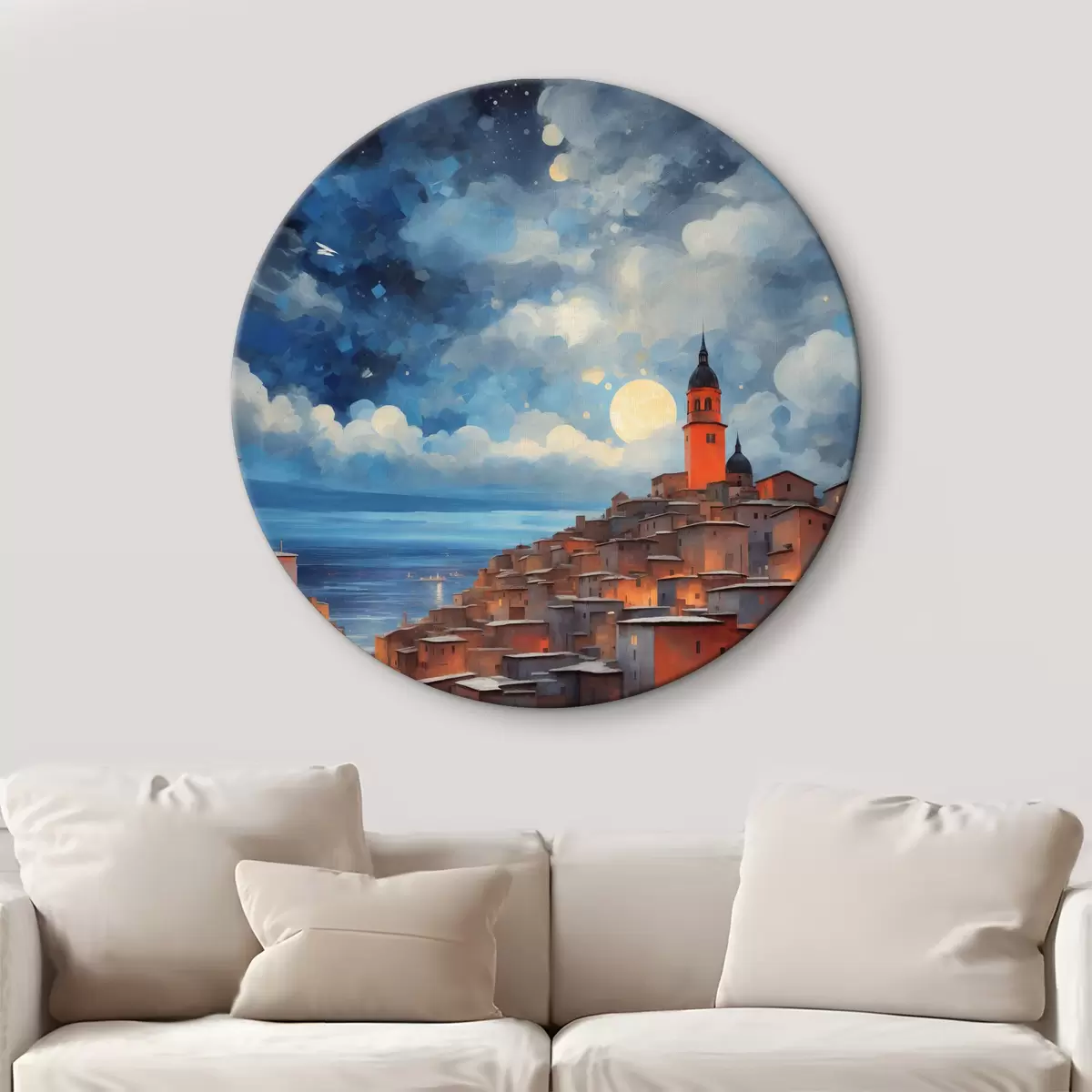 Ronde schilderijen Uitzicht op een middeleeuwse Europese stad r36229