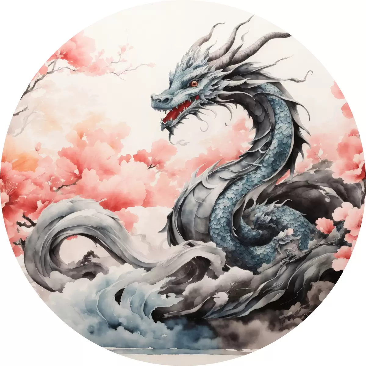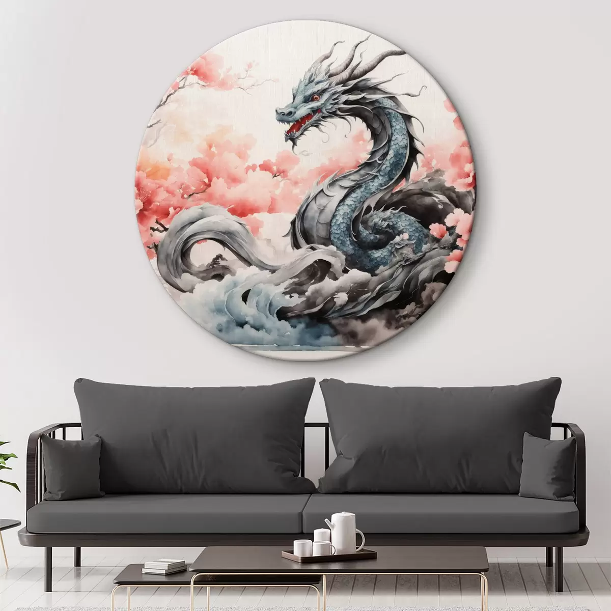 Ronde schilderijen Draak uit de Chinese mythologie aquarel r36239