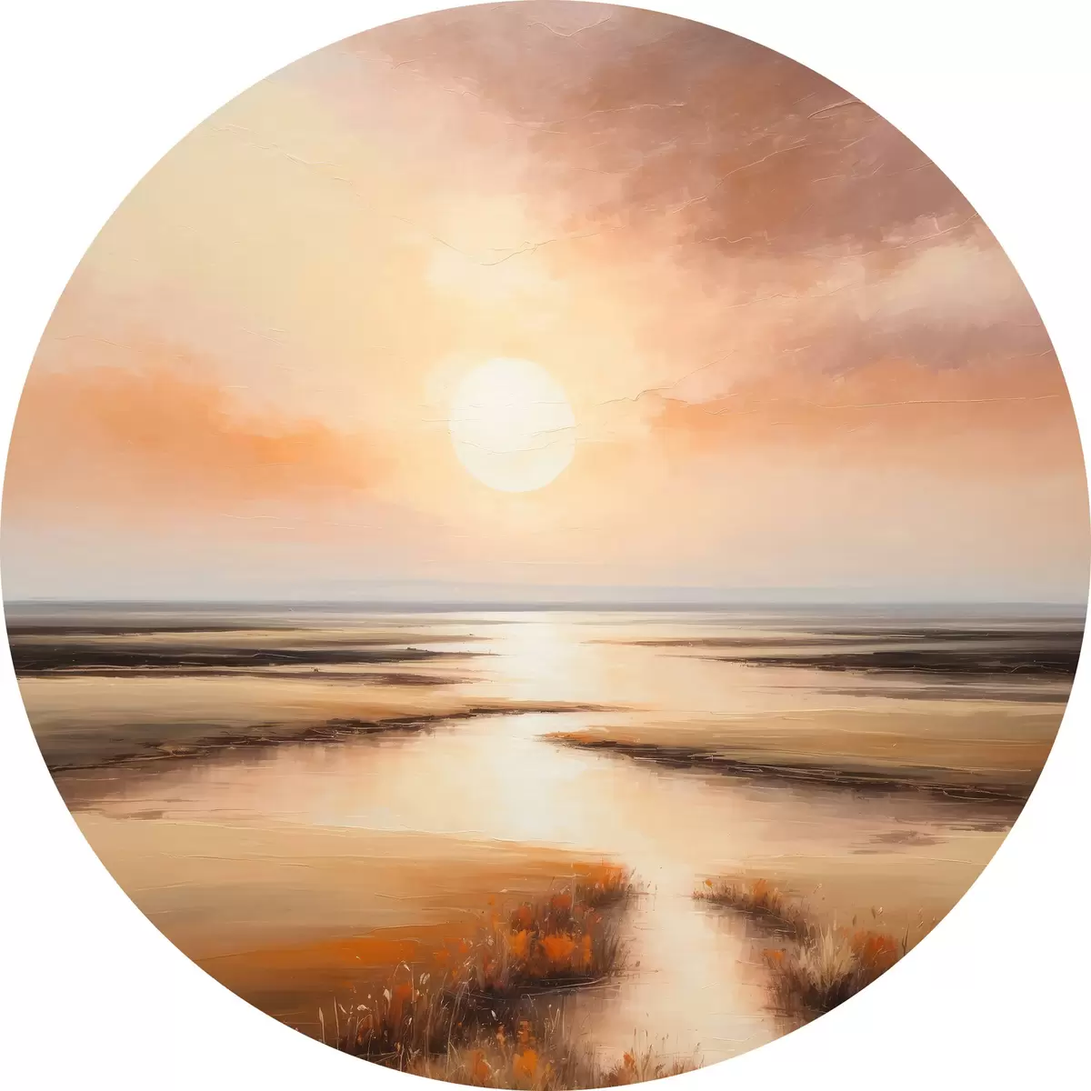 Ronde schilderijen Zicht op de vijver bij zonsopgang r36436