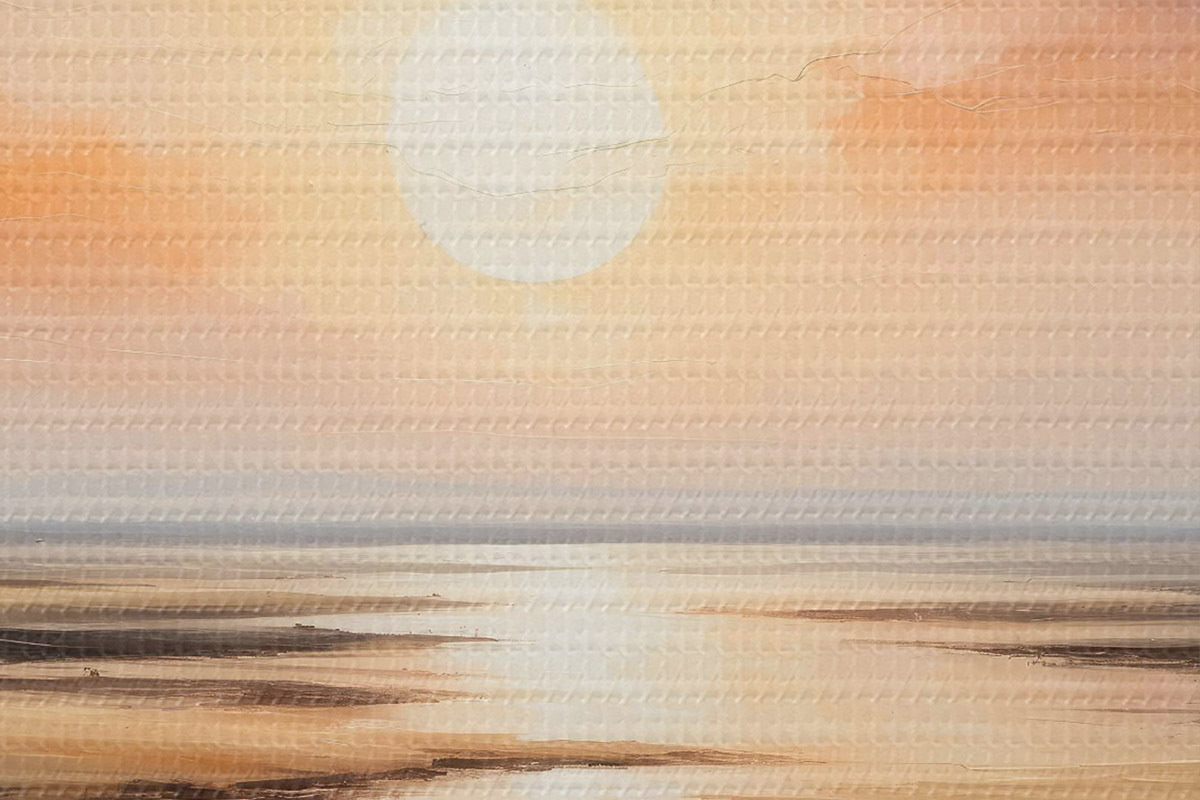 Het schilderij kan direct na ontvangst worden opgehangen. Het schilderij wordt opgespannen op een 2 cm breed houten spieraam.