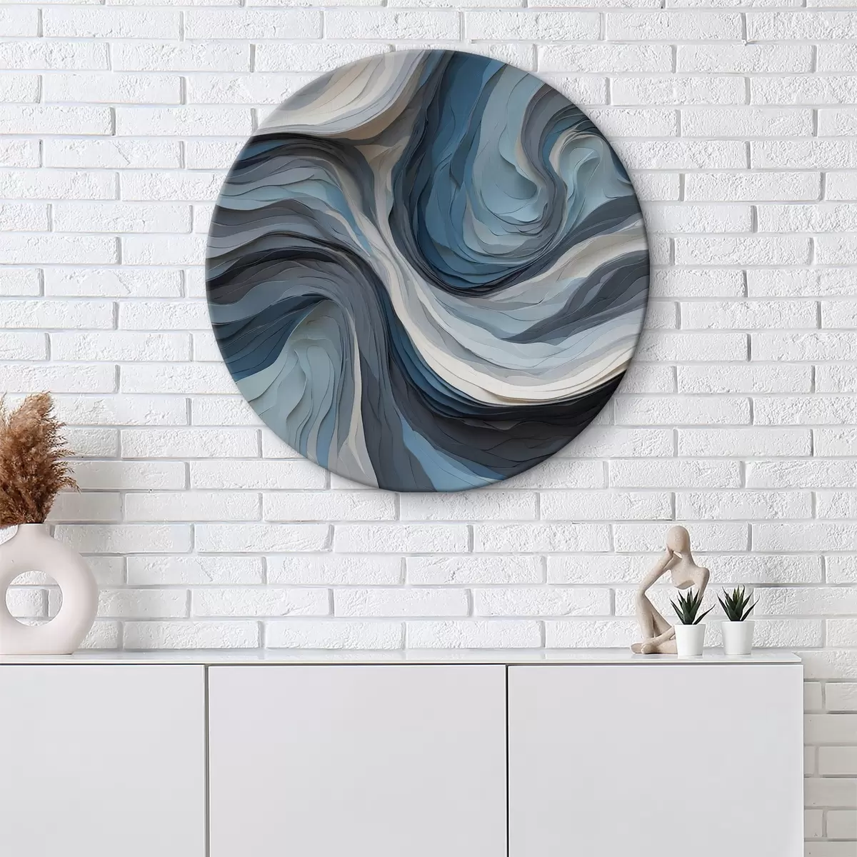Ronde schilderijen Vloeiende golven van kalme blauwe tinten r36438
