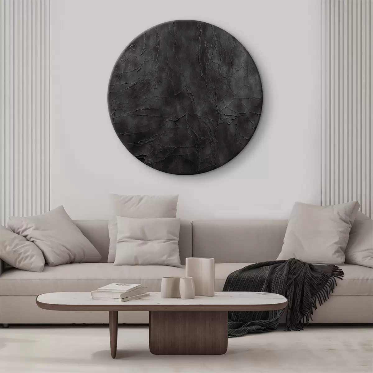 Ronde schilderijen Close-up van een rotsoppervlak met donkere structuur r36439