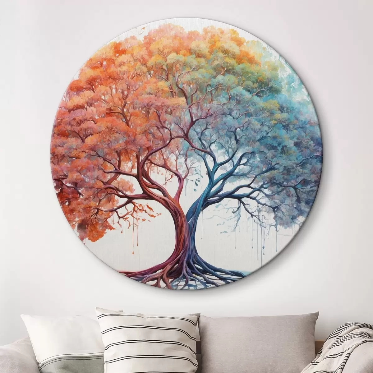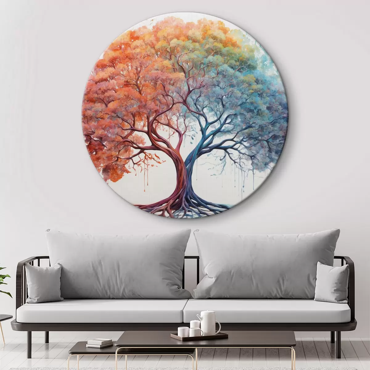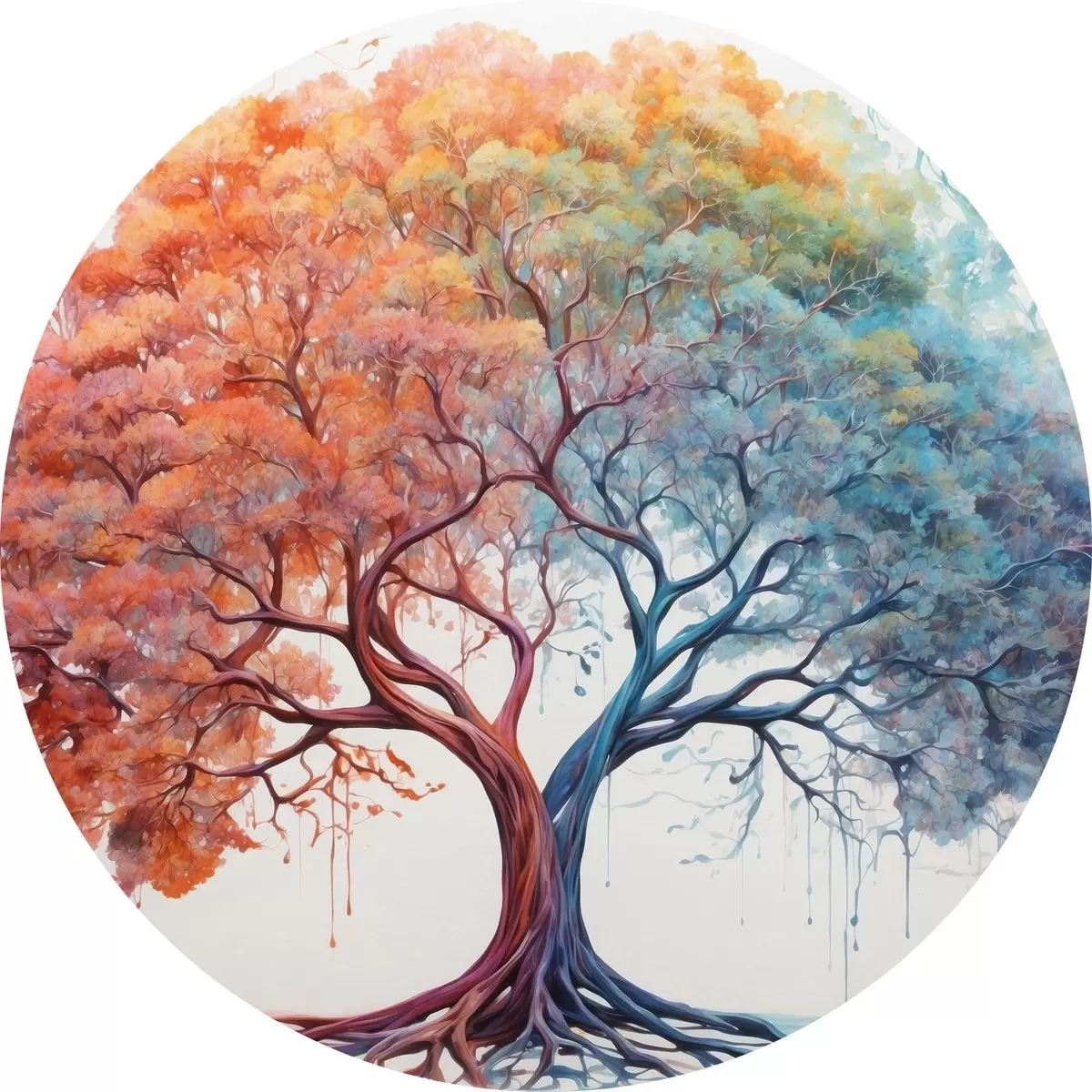Ronde schilderijen Fantastische boom met verschillend kleurenspectrum r36444