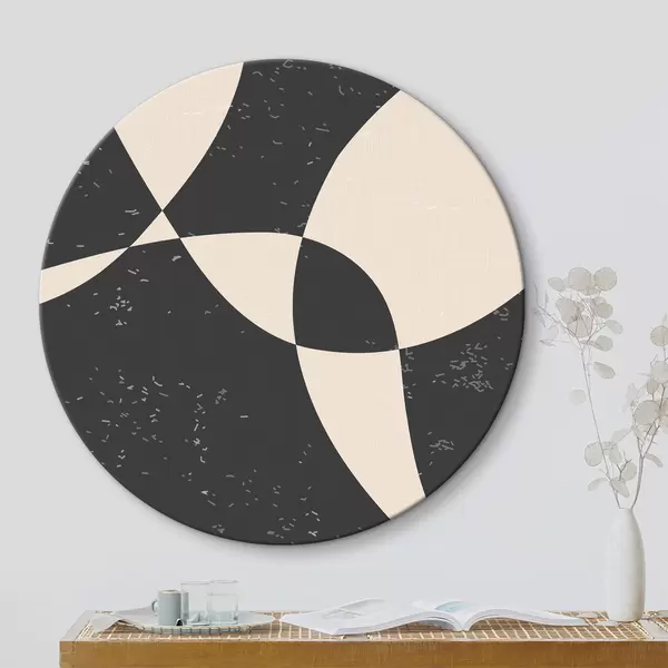 Ronde schilderijen Elegante geometrische abstractie in crèmekleur r36456