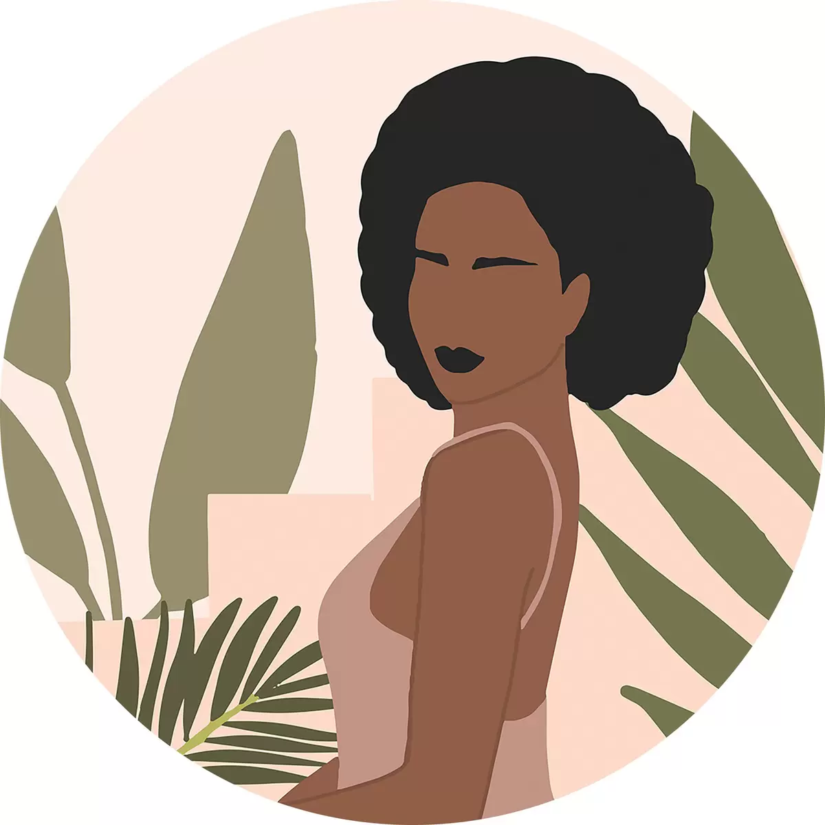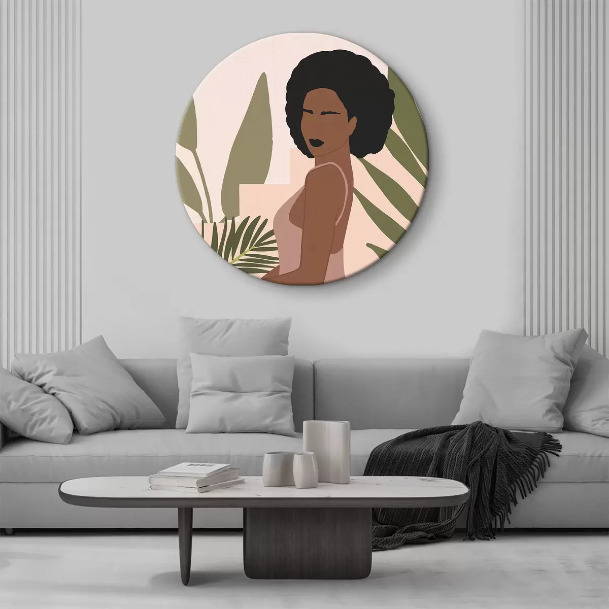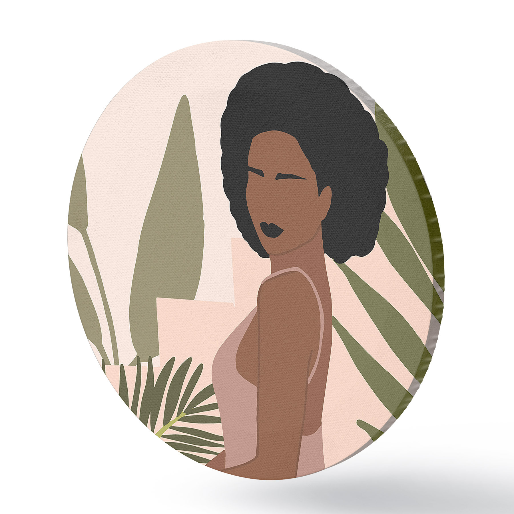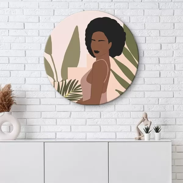 Ronde schilderijen Elegantie tussen rustige tropische bladeren r36492