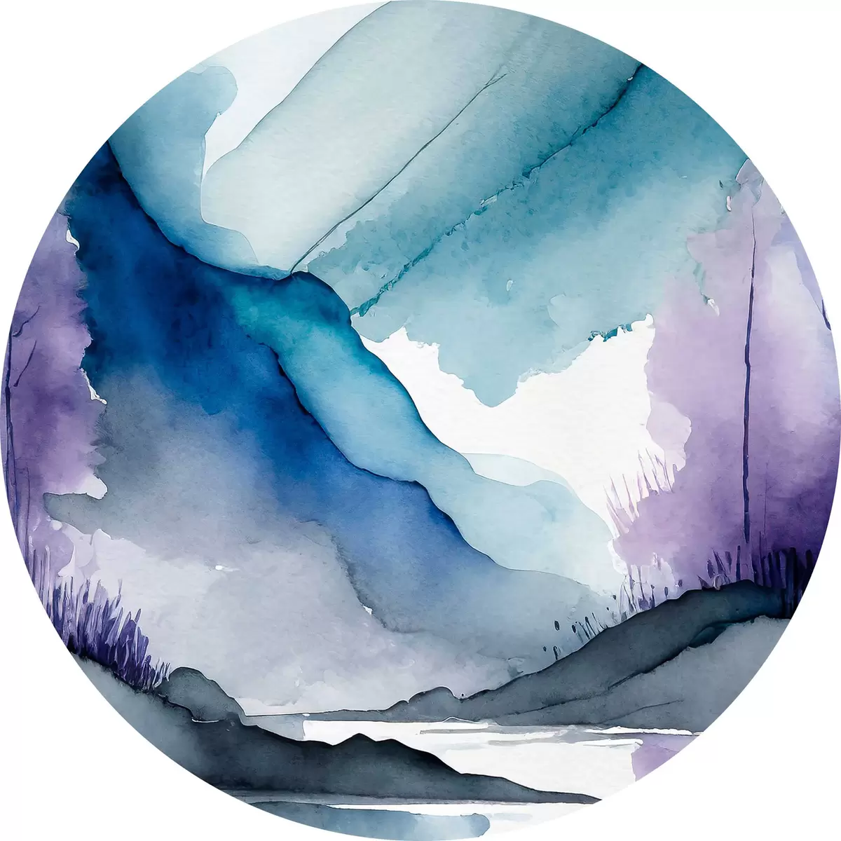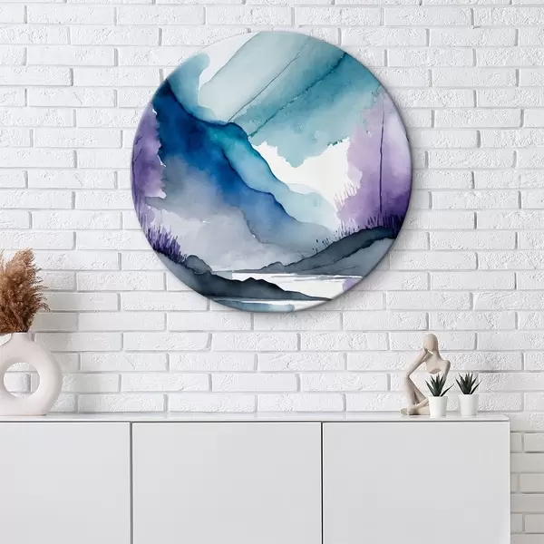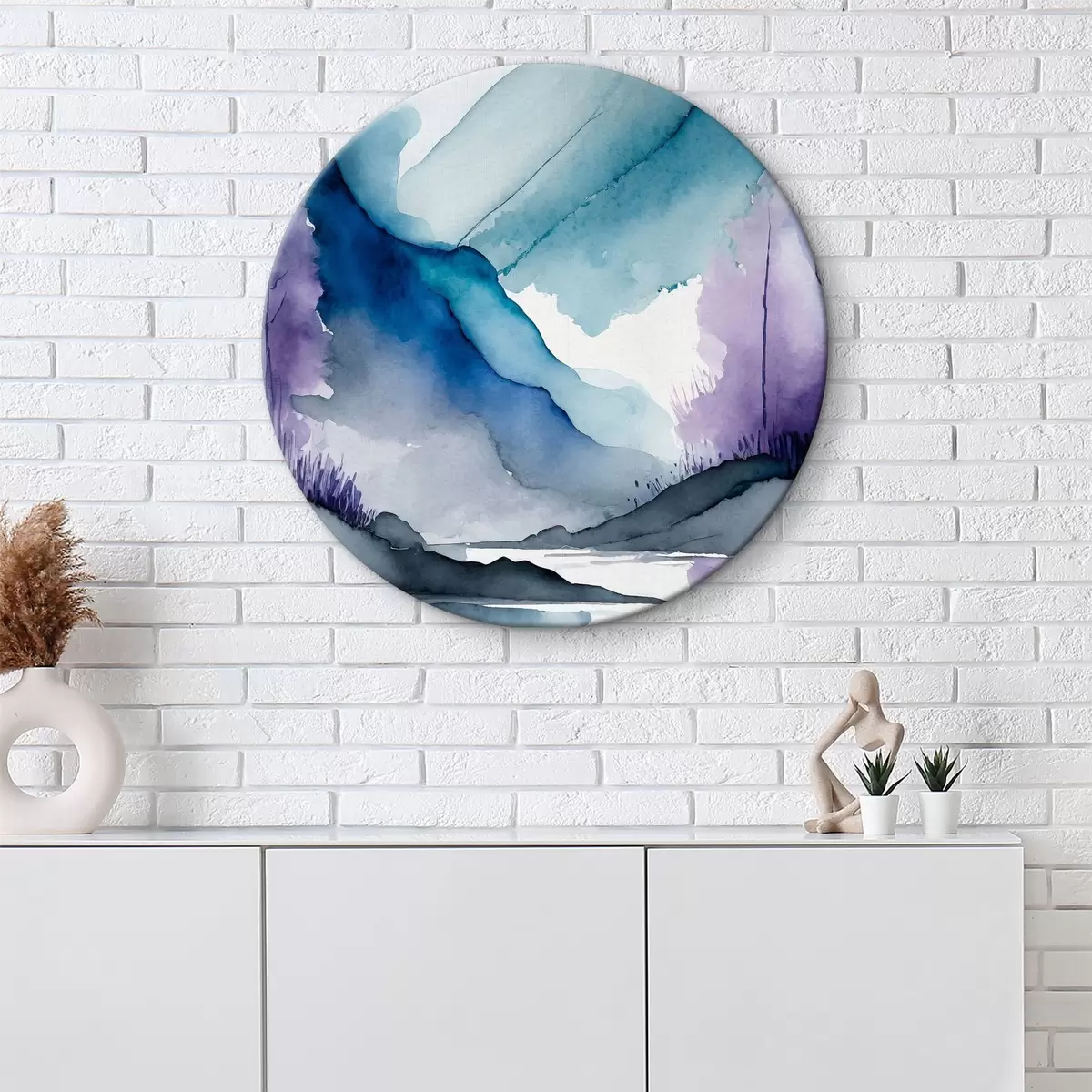Ronde schilderijen Nevelige bergen en kalm water r36494