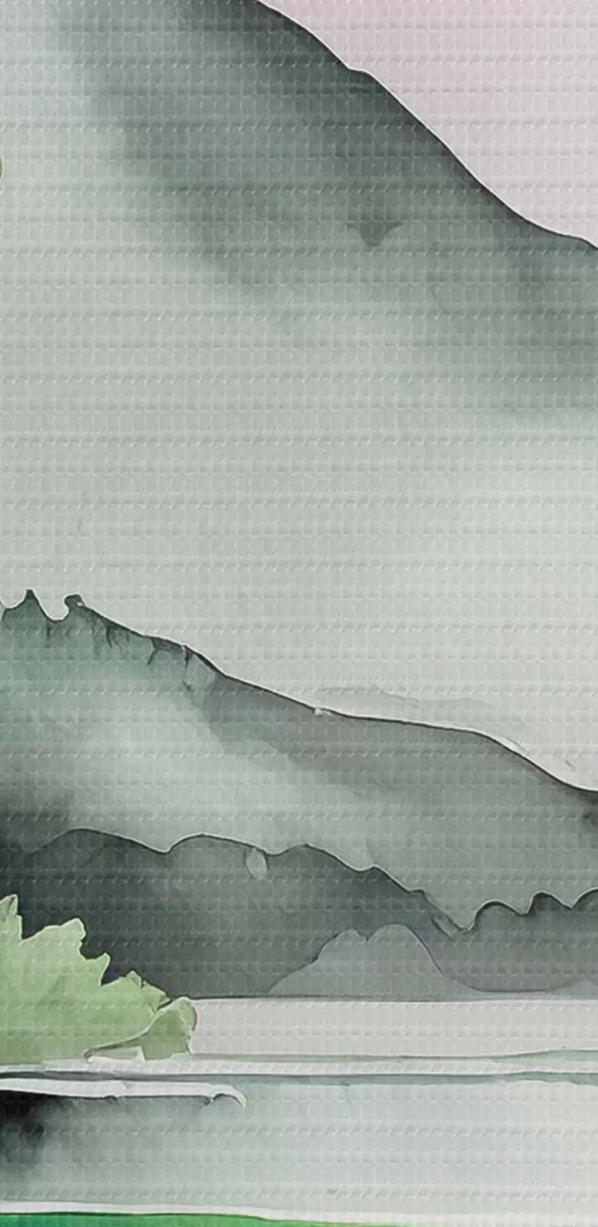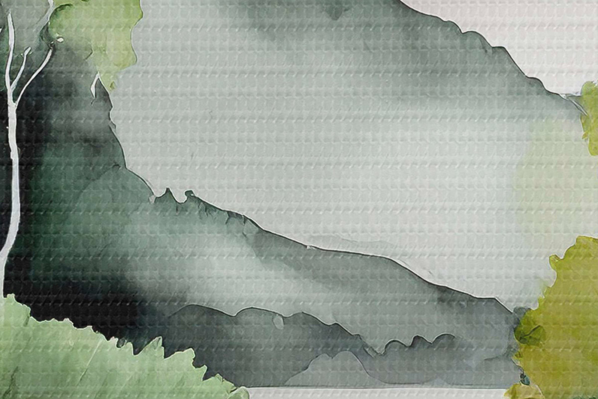 Afbeelding Aquarel natuurlandschap, meer en bos, zacht groen, roze en grijze kleuren Nr r36507