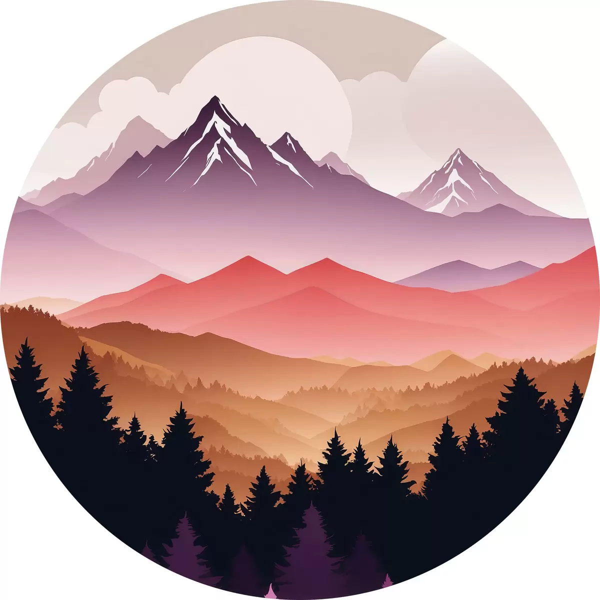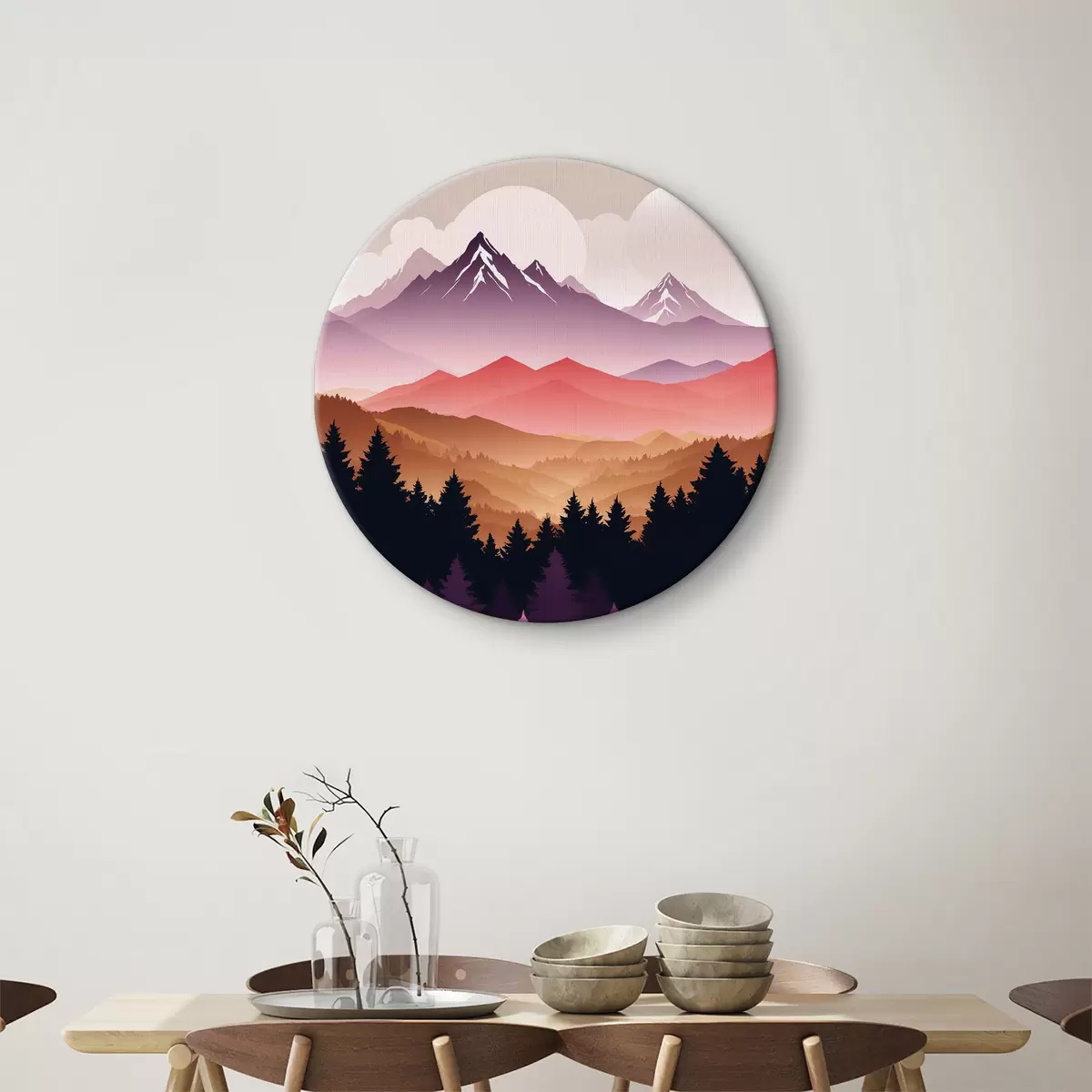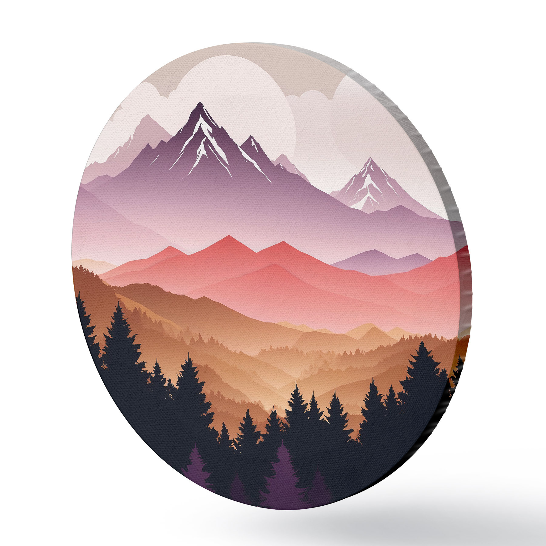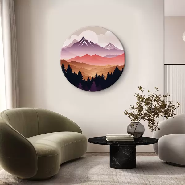 Ronde schilderijen Zonsondergang over de vredige bergen r36527