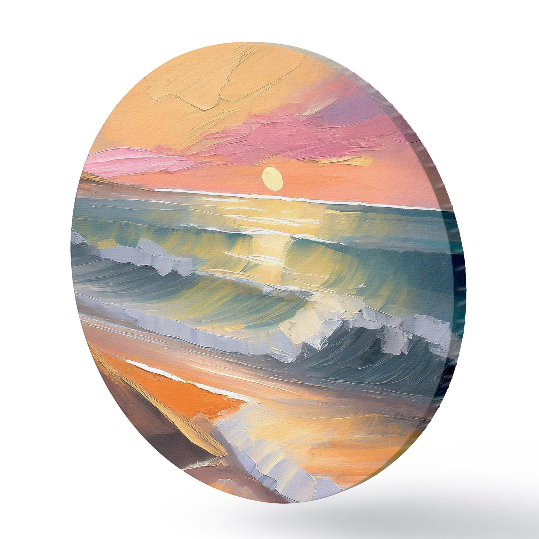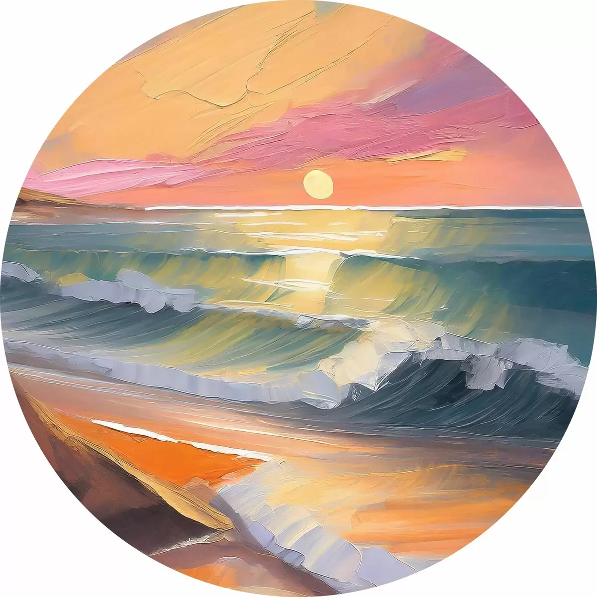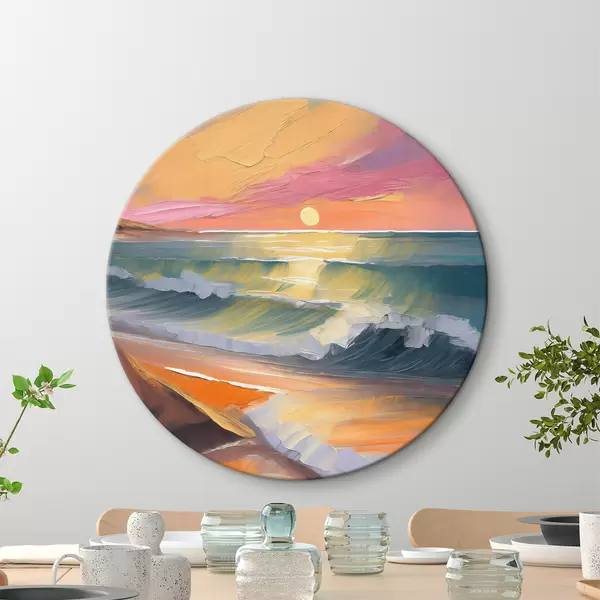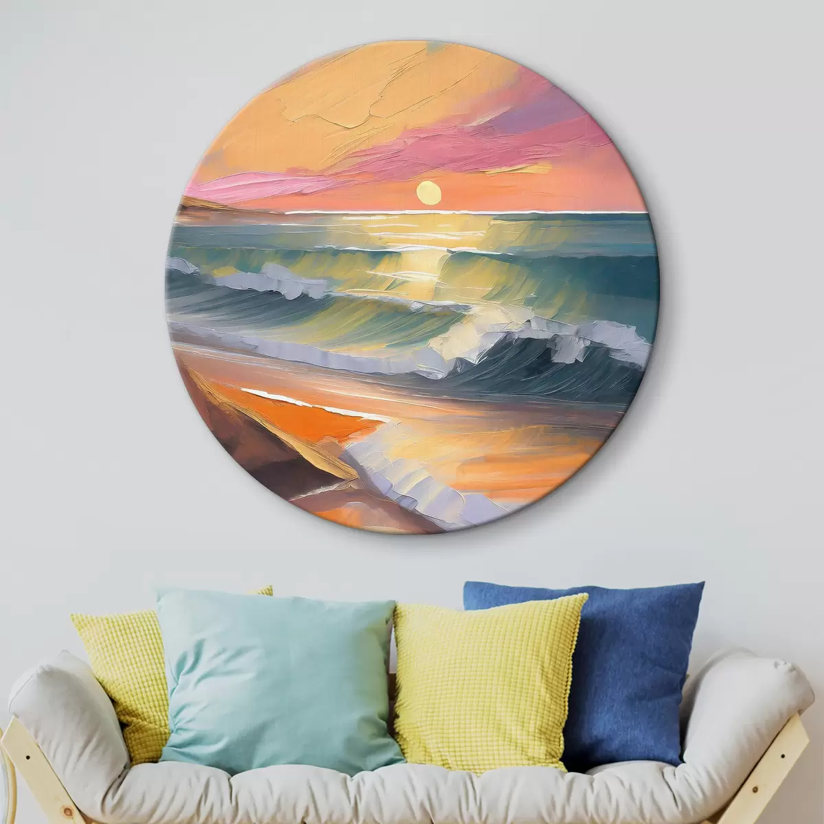 Ronde schilderijen Zonsondergang reflecties in levendige penseelstreken r36586