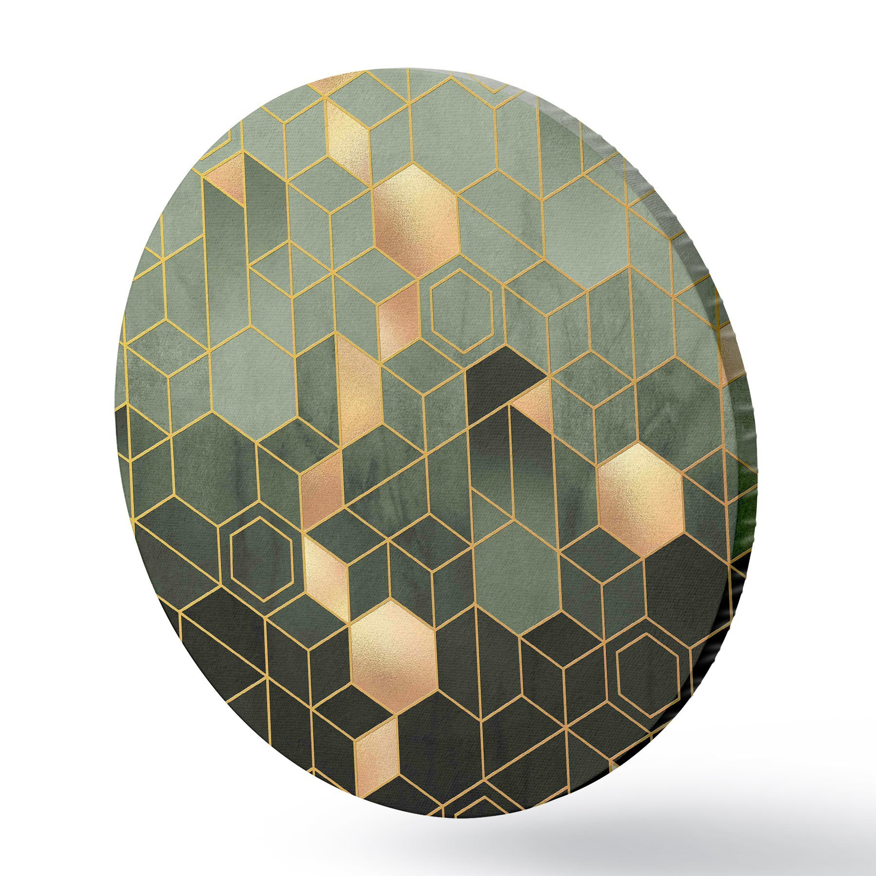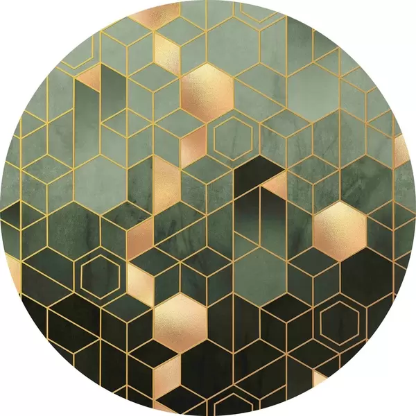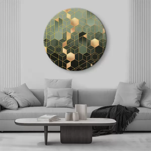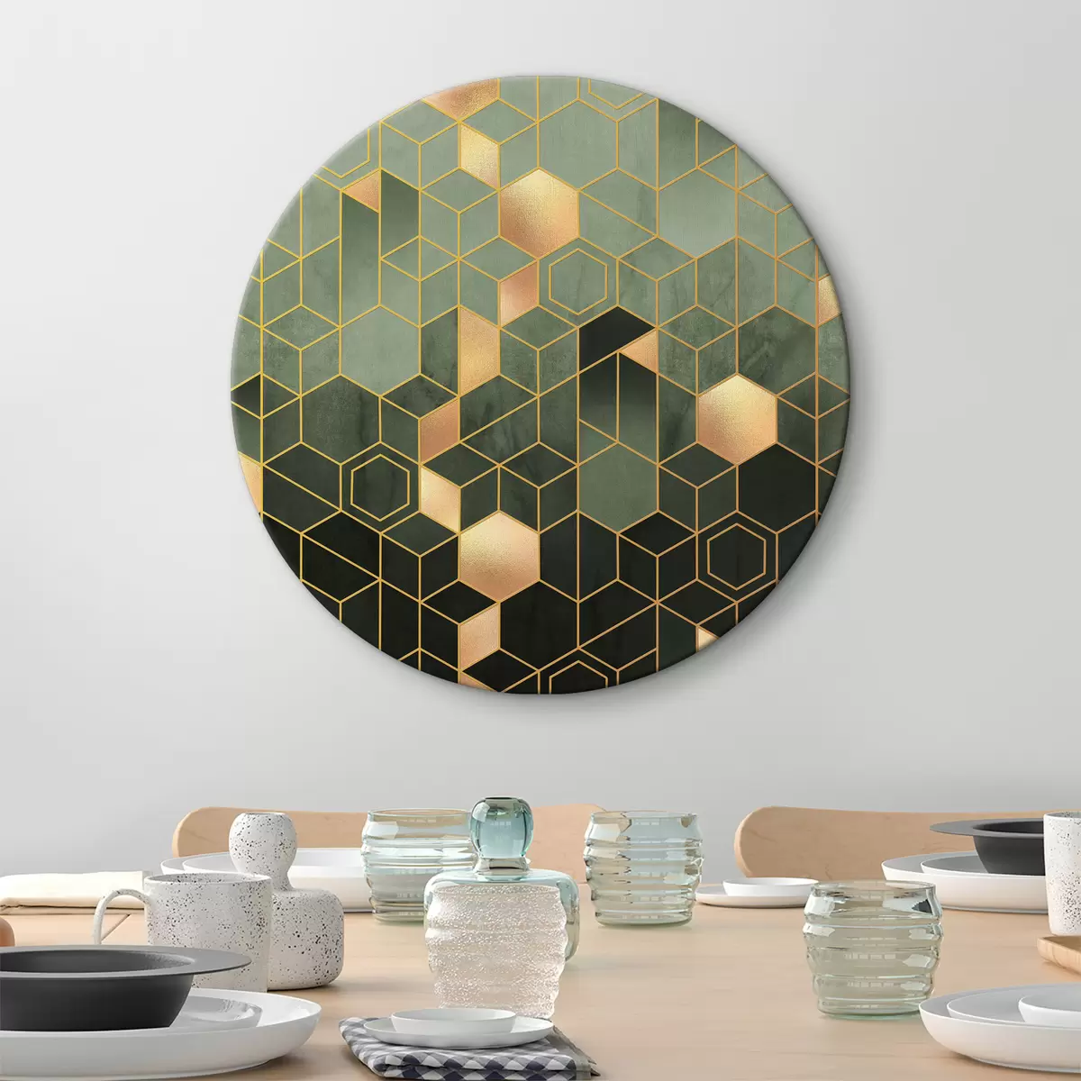 Ronde schilderijen Geometrische elegantie van smaragd en amber r36602v2