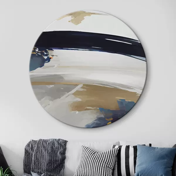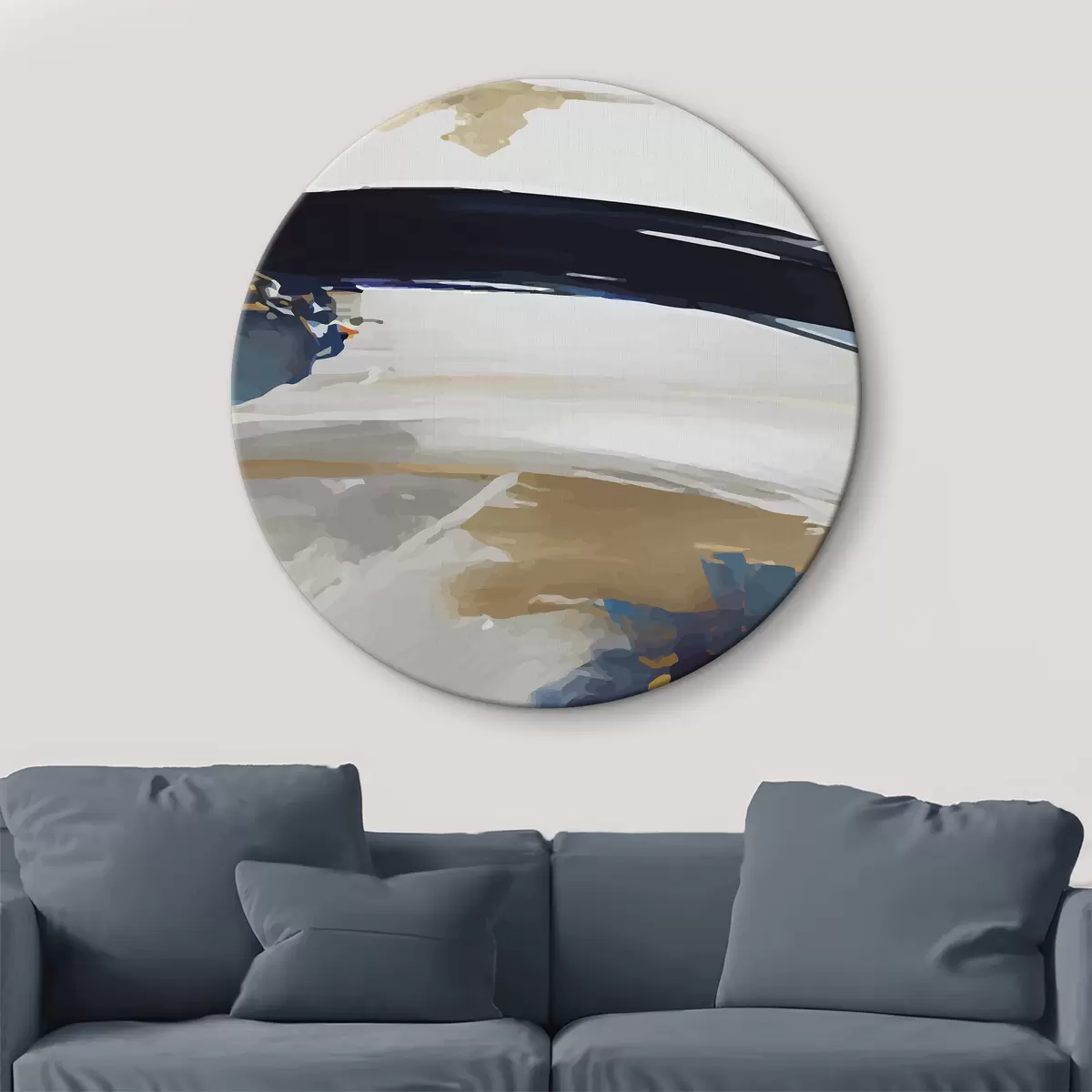 Ronde schilderijen Expressieve abstractie in grijs en blauw r36620