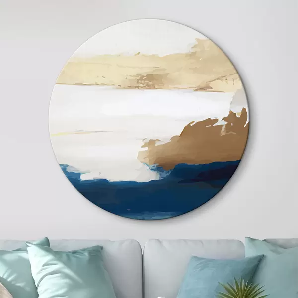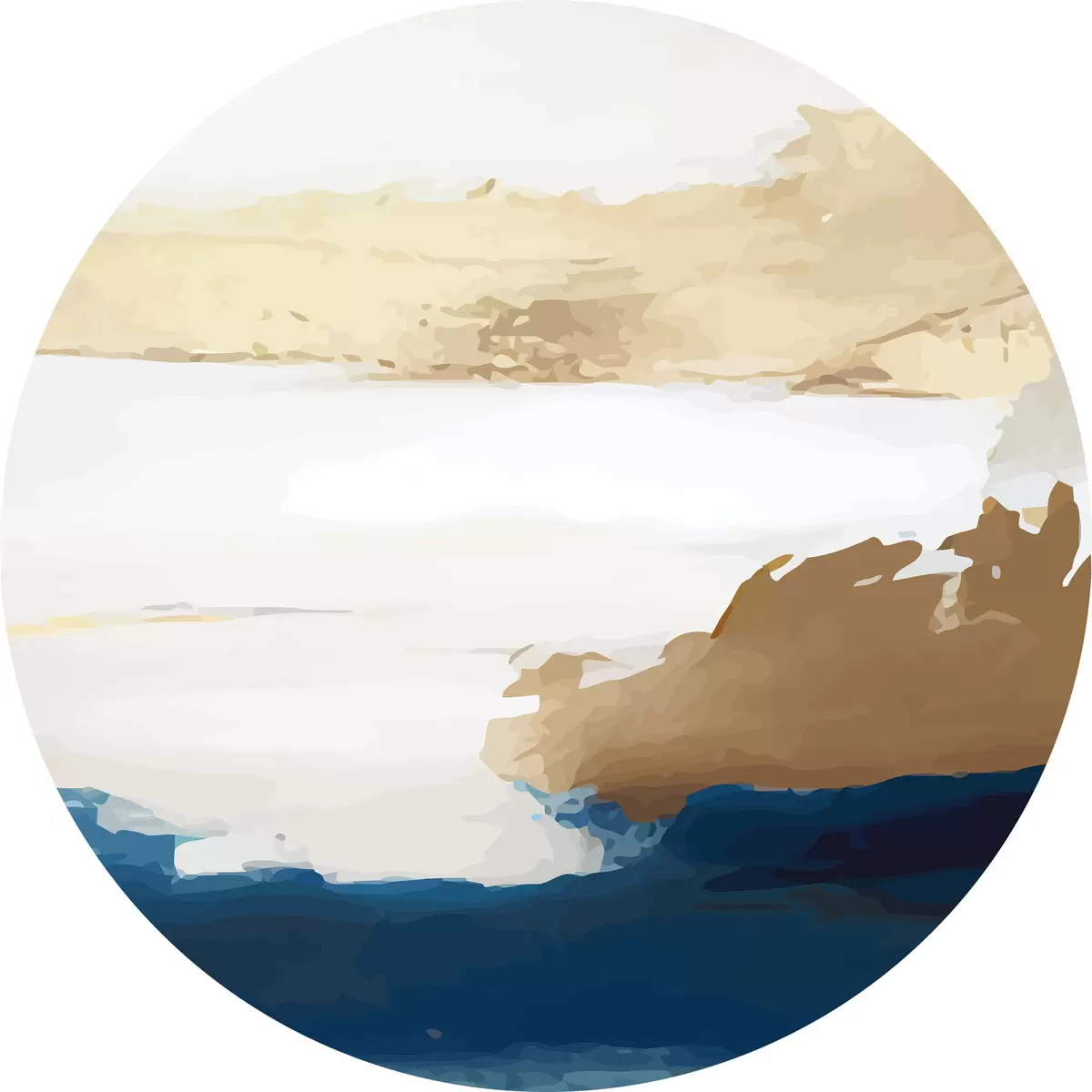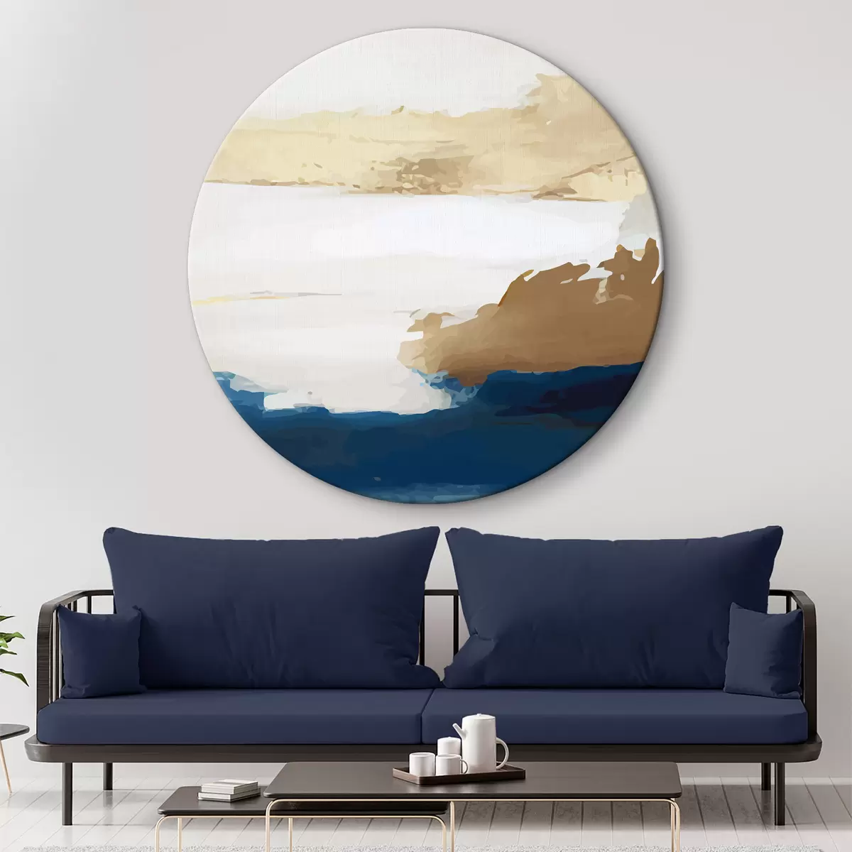 Ronde schilderijen Lichte abstractie met blauwe accenten r36622
