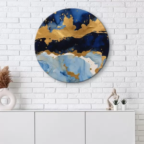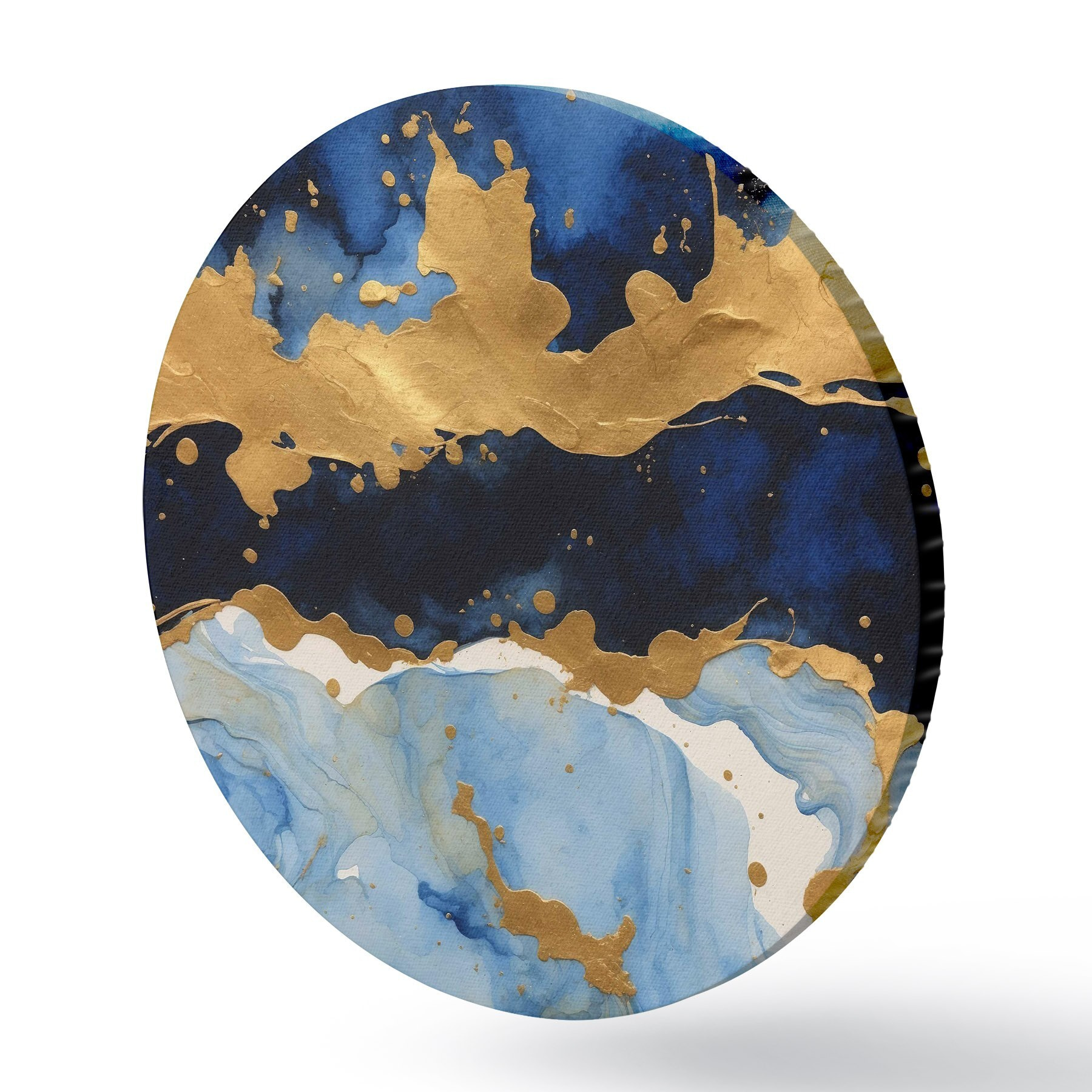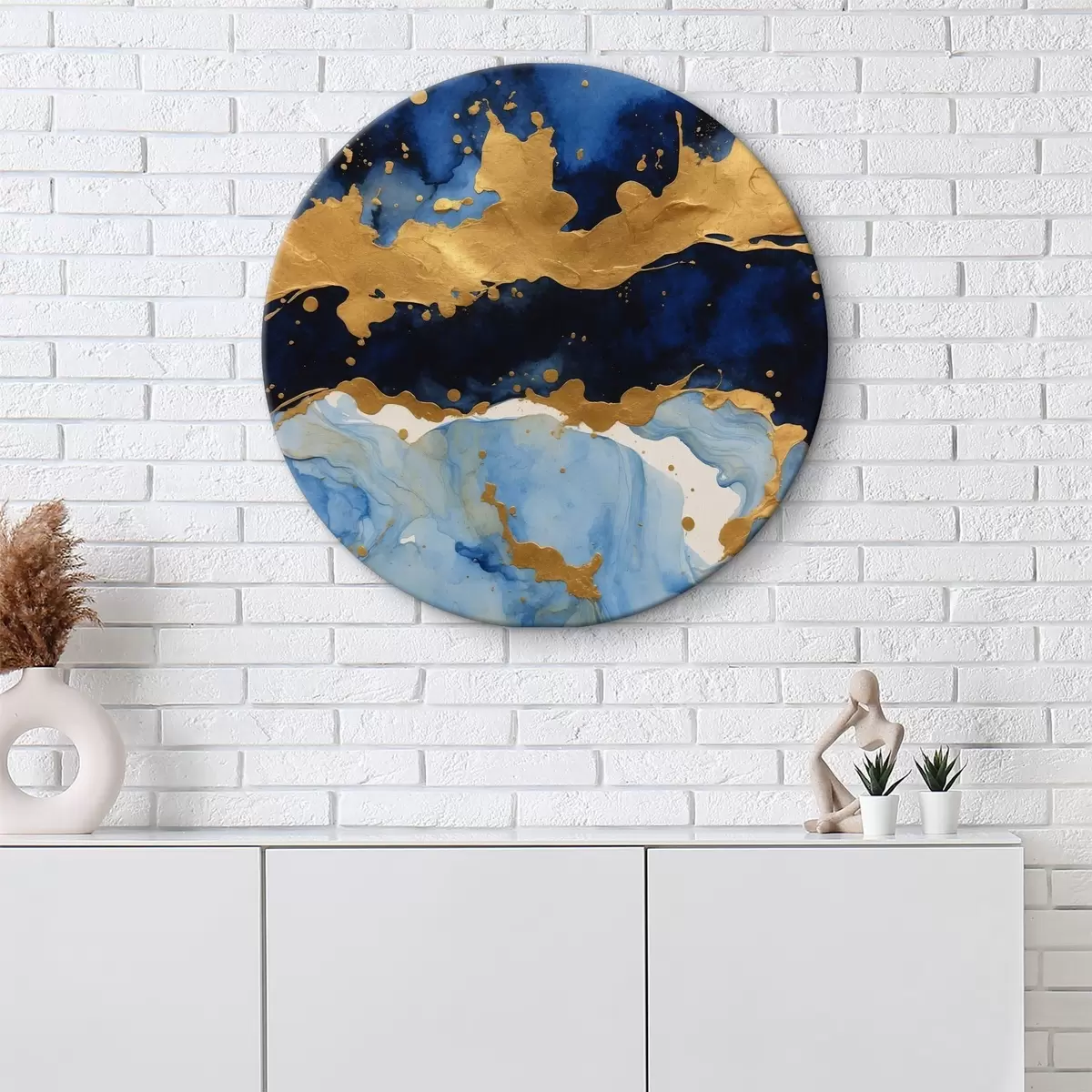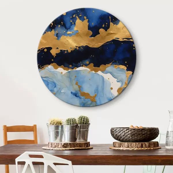 Ronde schilderijen Middernachtblauw gecombineerd met metallic golven r36641