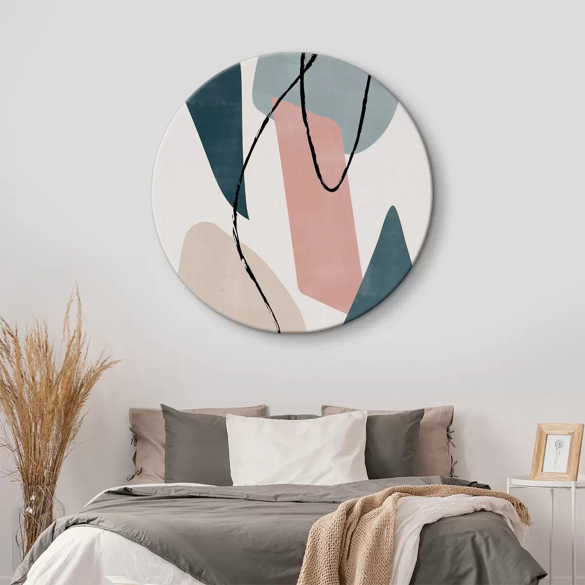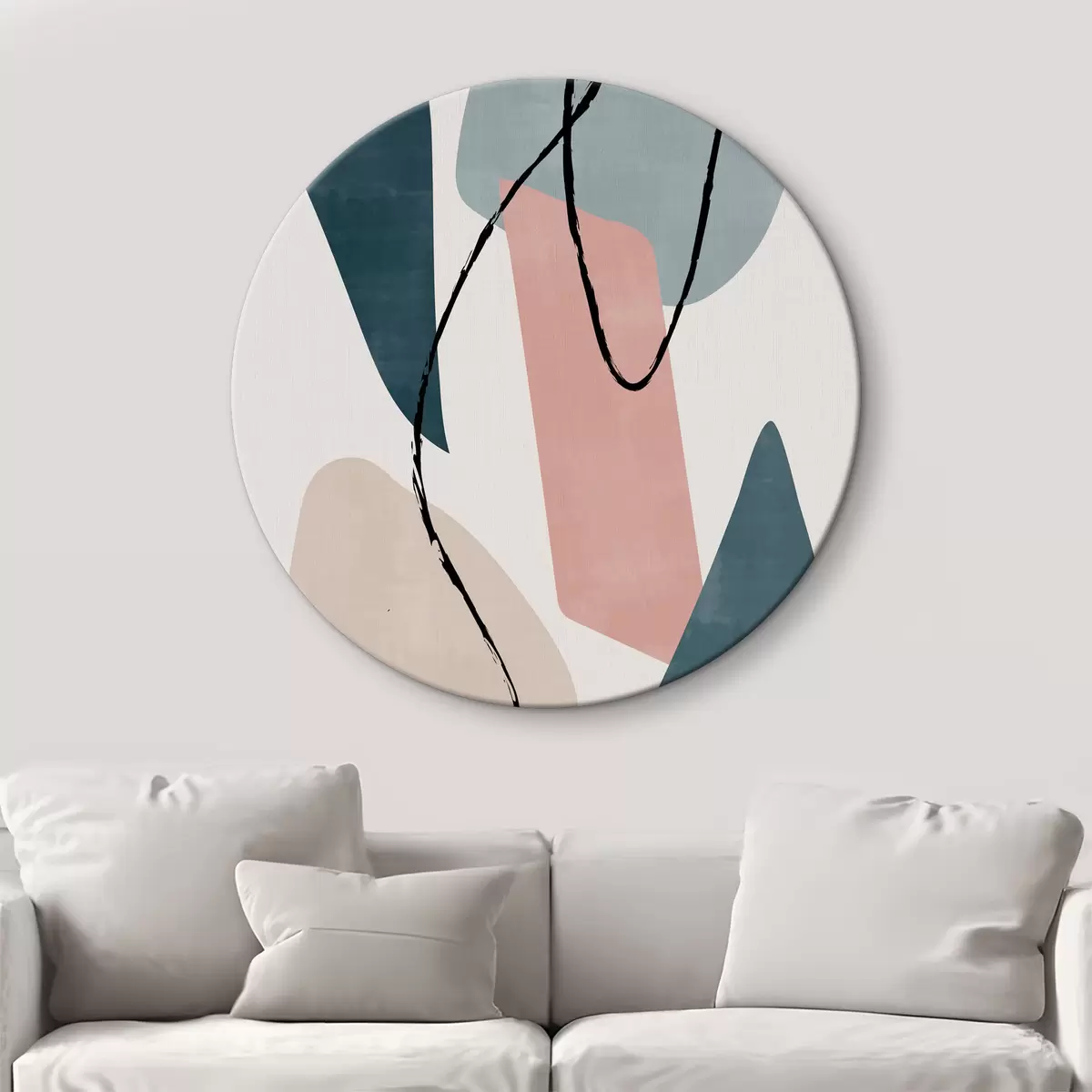 Ronde schilderijen Kleurrijk kunstwerk met zwarte lijnen r36650