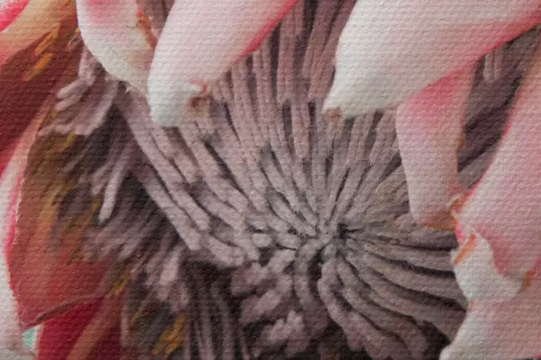 De fijne weving van draden op dit doek lijkt op het oppervlak van professionele schildersdoeken.