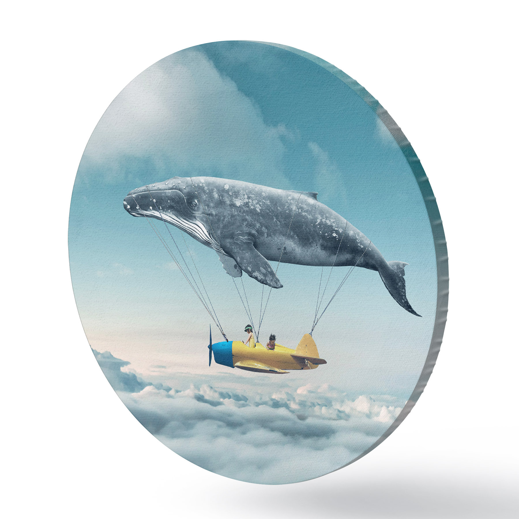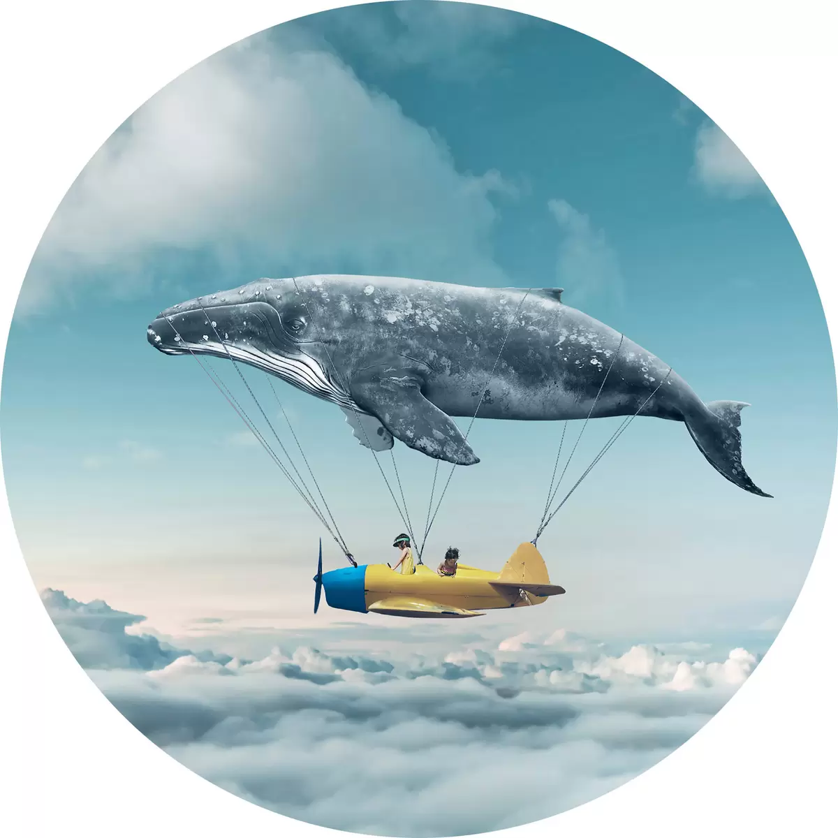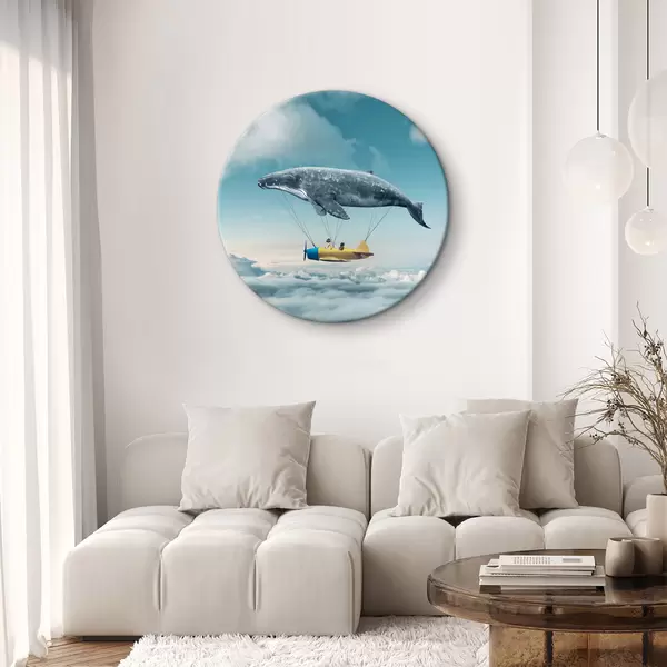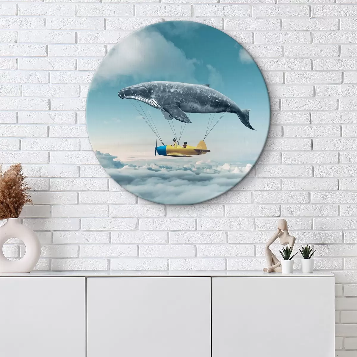 Ronde schilderijen Een walvis en een walvis aan een klein vliegtuig r36701