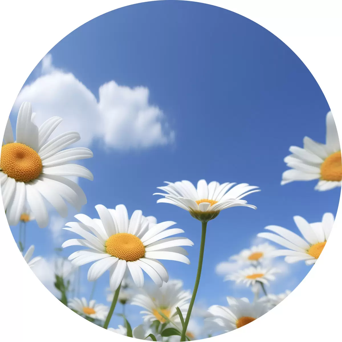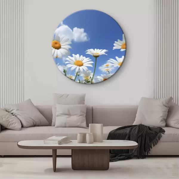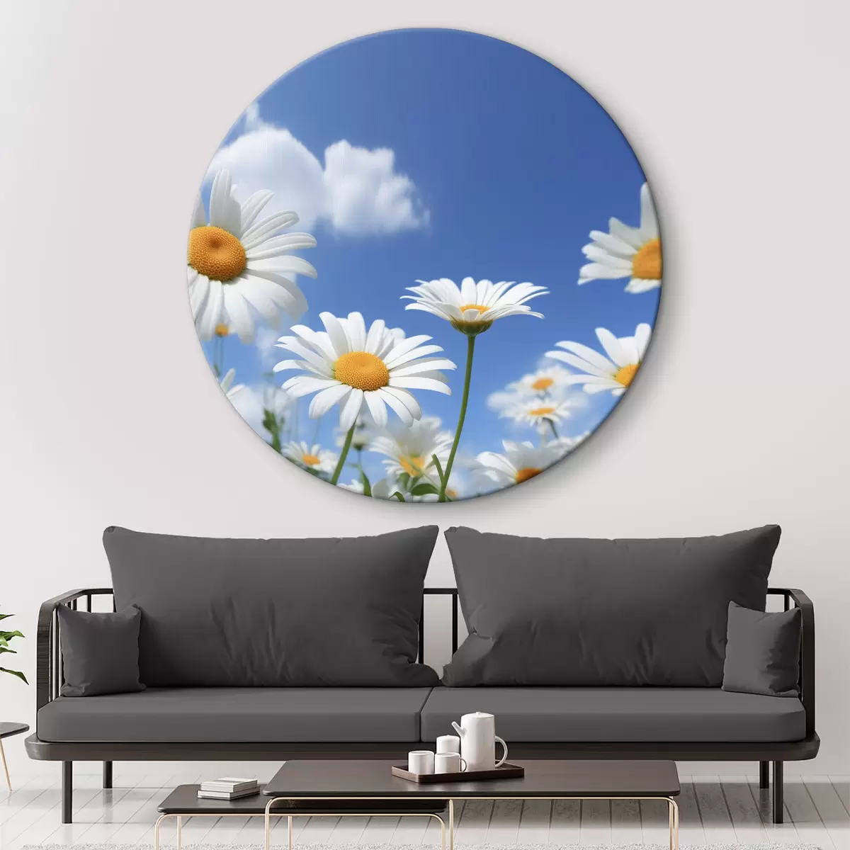 Ronde schilderijen Madeliefjes tegen de blauwe lucht r36802