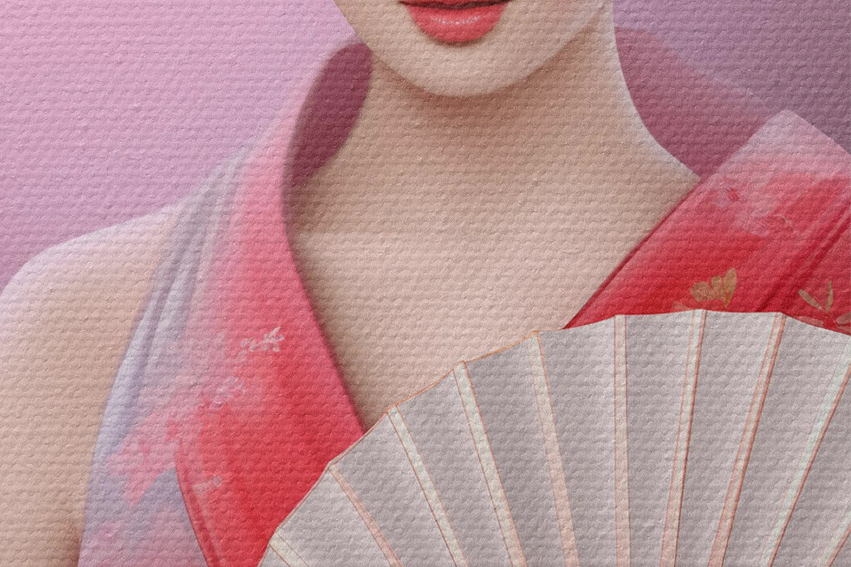 Afbeelding Een vrouw in een kimono die een waaier vasthoudt Nr r36804