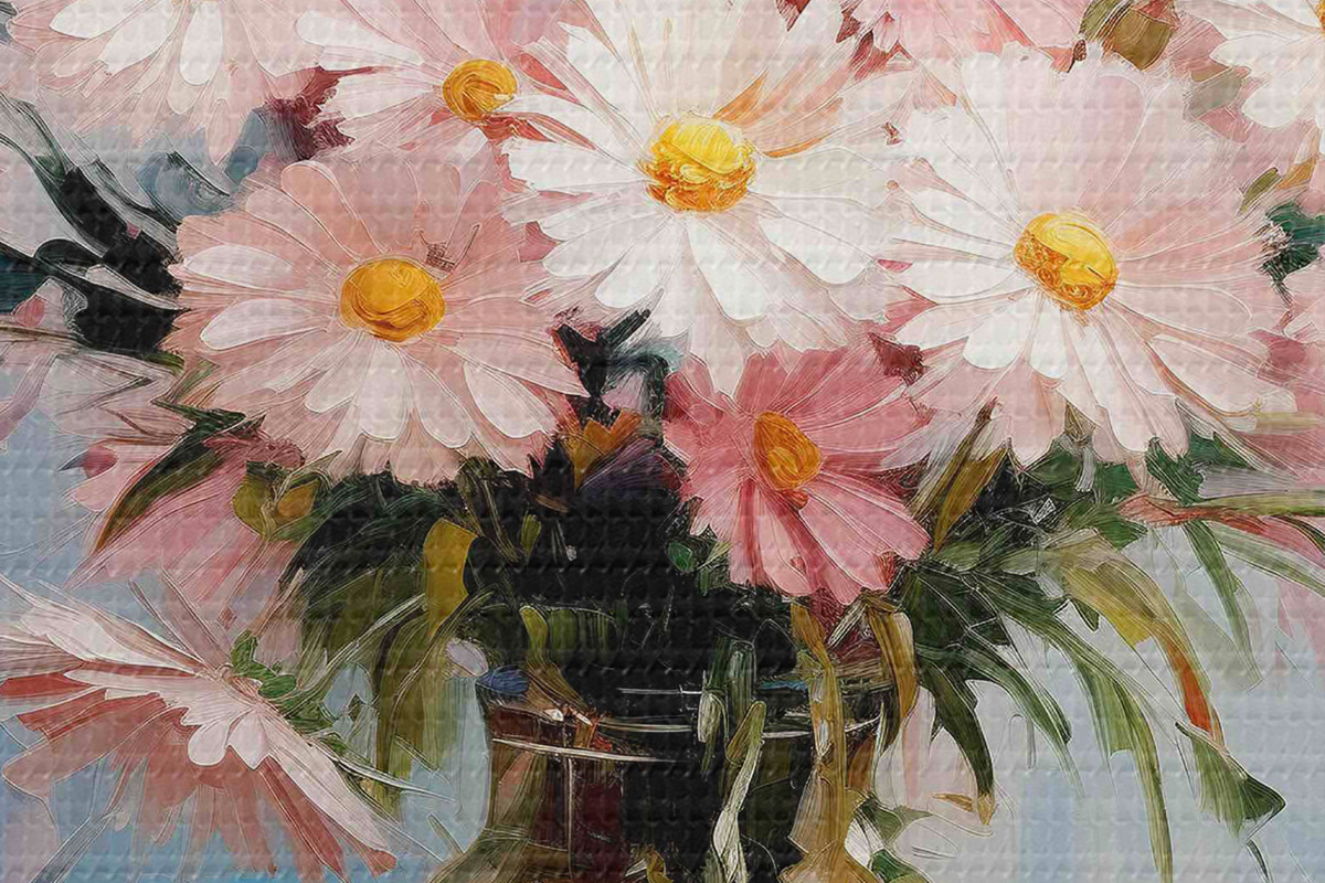 Er zijn drie soorten materiaal te bestellen: Economic Canvas - een dicht en duurzaam materiaal voor digitaal printen, identiek aan schildersdoek, waterdicht oppervlak, realistische weergave van details, materiaal met gemiddelde korrel. Premium Canvas - de textuur lijkt op die van schildersdoek (verweven kleine draden). Zachte, gedetailleerde reproductie van de afbeelding op een mat oppervlak. Eco-Premium - hoogwaardige 100% katoenen stof. Dankzij de natuurlijke katoenvezels is het materiaal duurzaam en slijtvast. Uitstekende kleurweergave en detail.