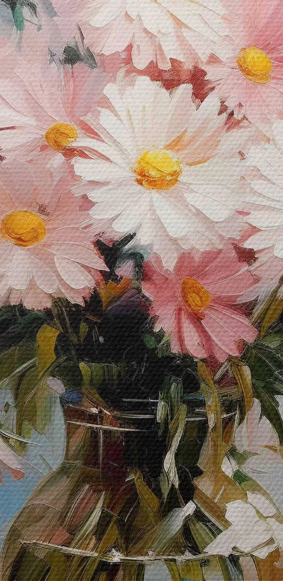 Het schilderij kan voorzichtig worden schoongeveegd met een droge zachte doek of spons; het wordt niet aanbevolen om natte producten te gebruiken. Het gebruik van een vochtige spons is alleen toegestaan als het schilderij gevernist is.