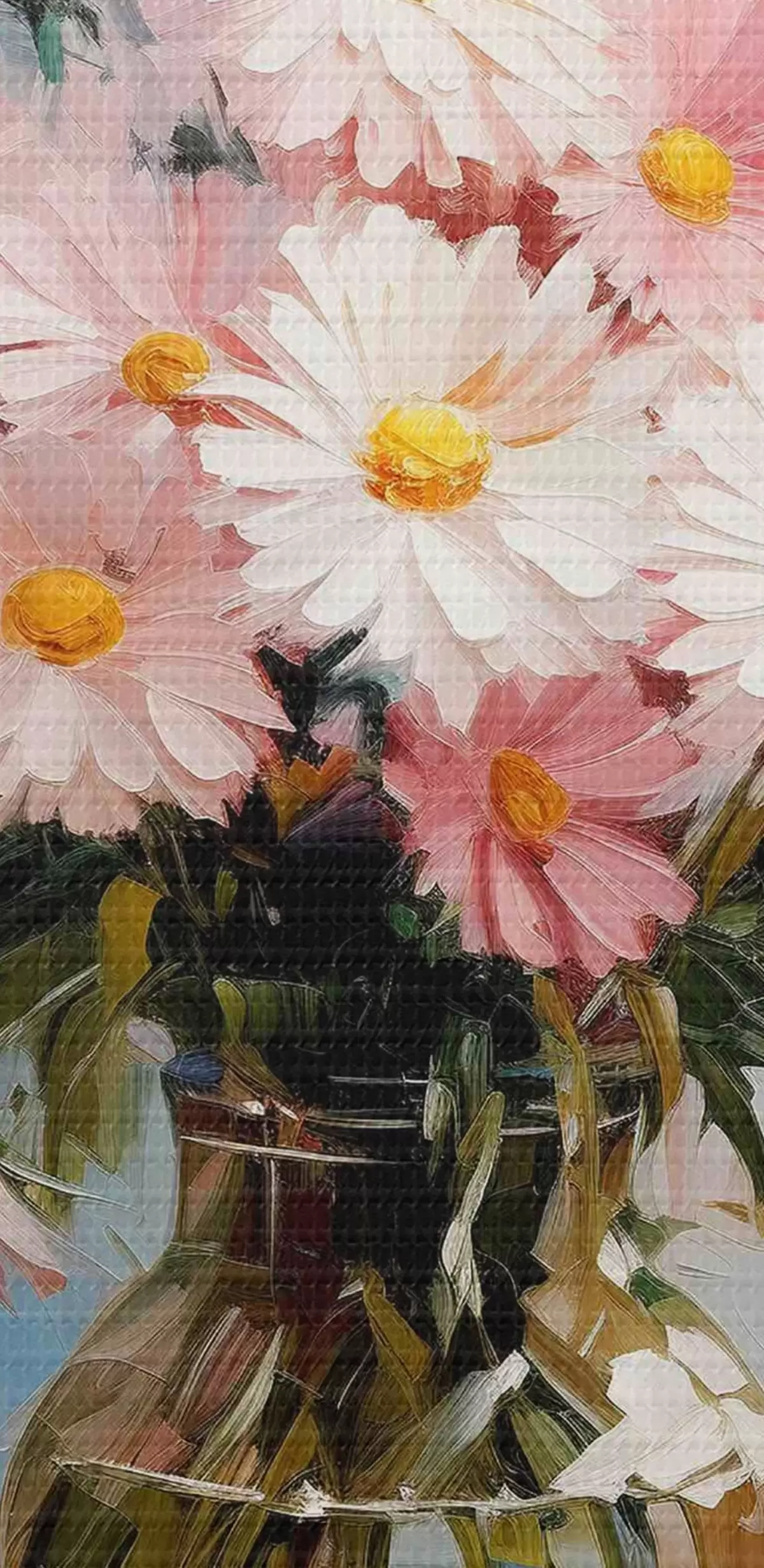 De fijne weving van draden op dit doek lijkt op het oppervlak van professionele schildersdoeken.