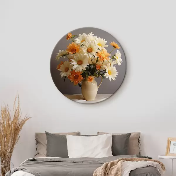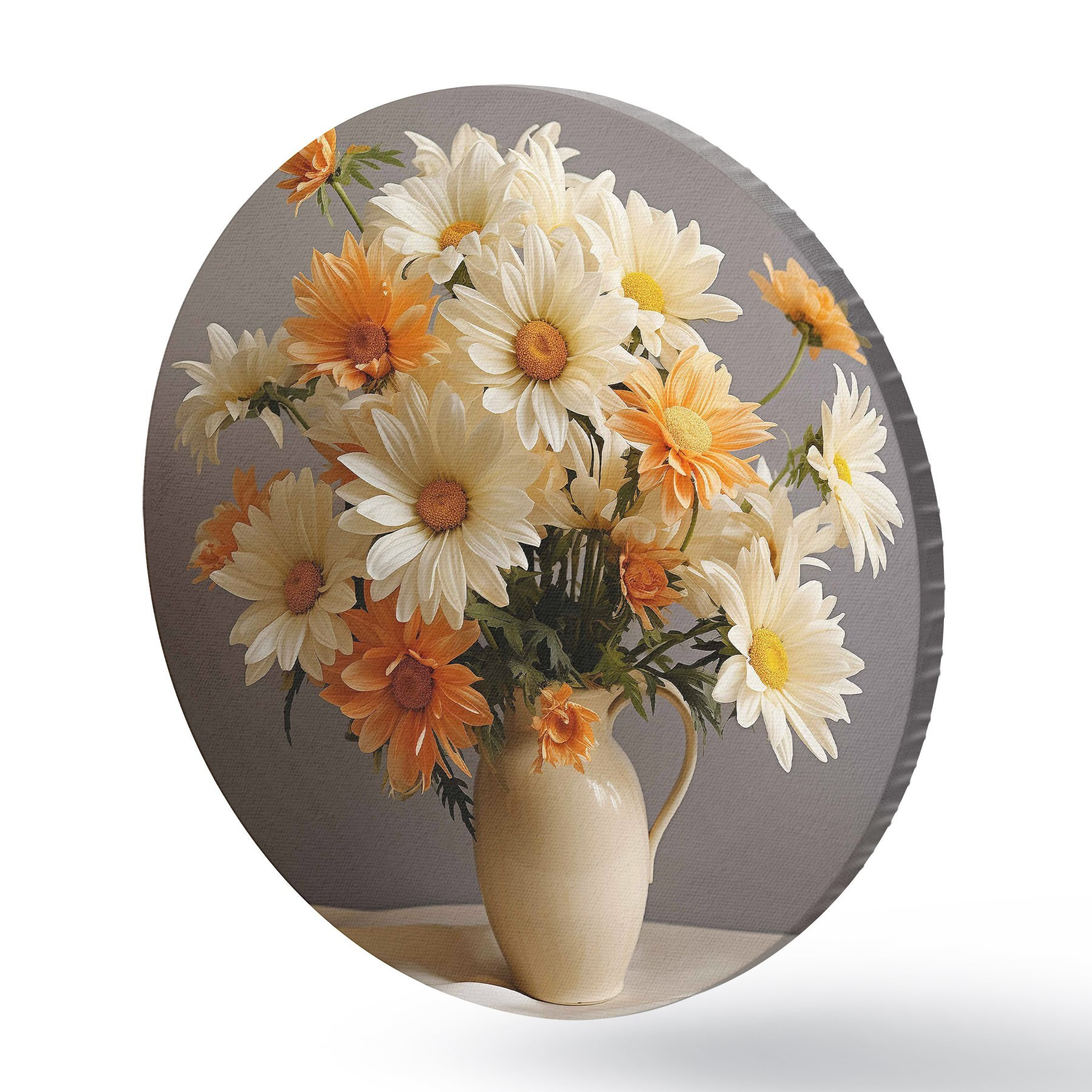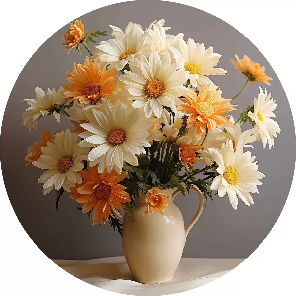 Ronde schilderijen Een vaas met bloemen op tafel r36812