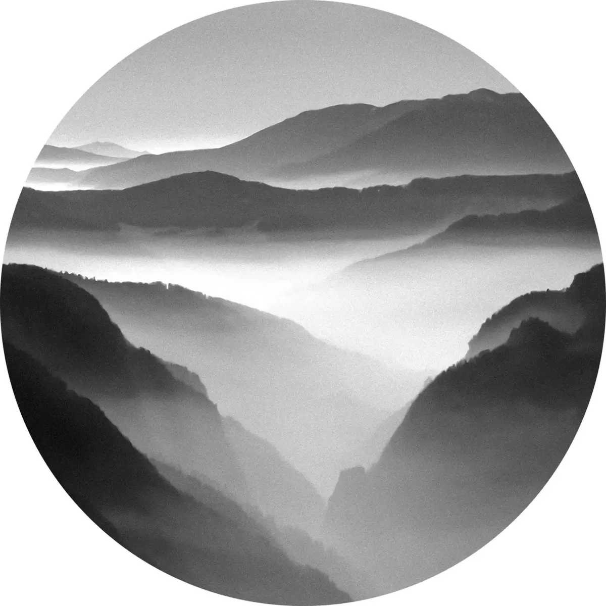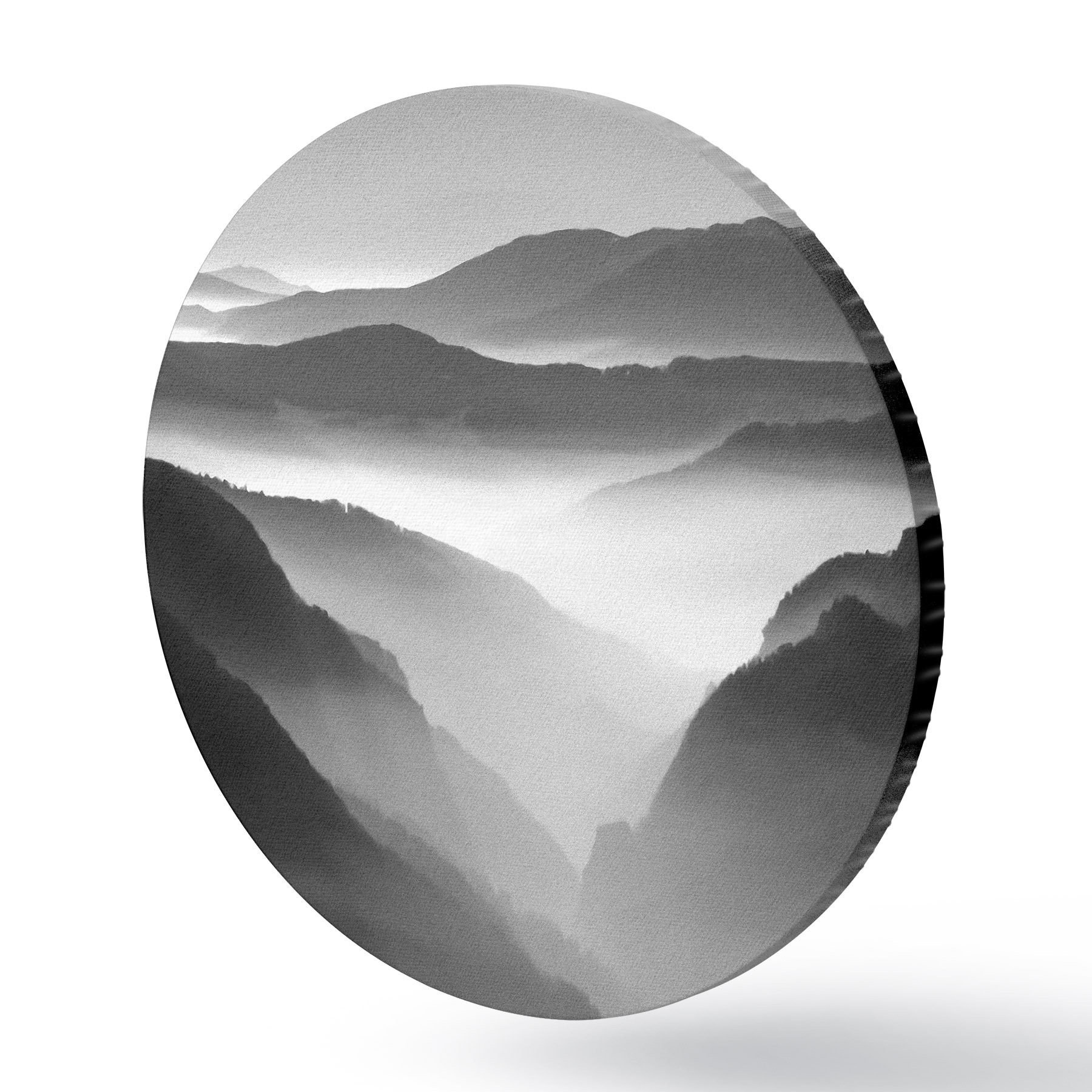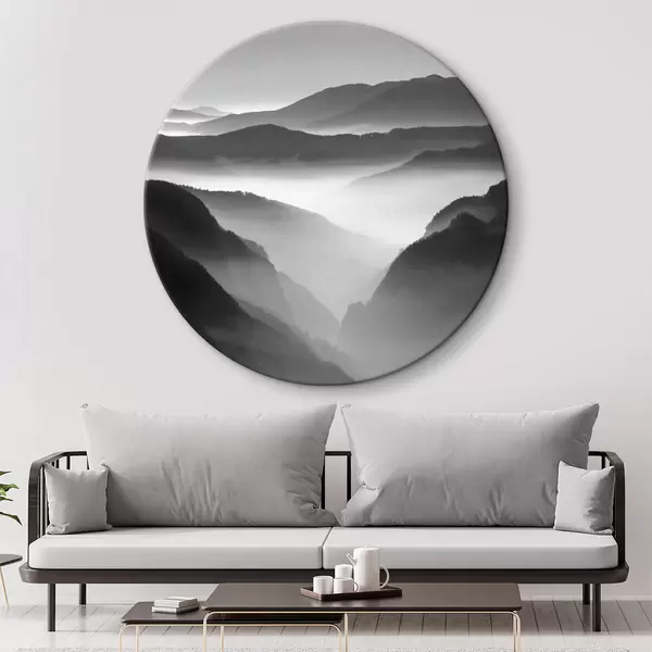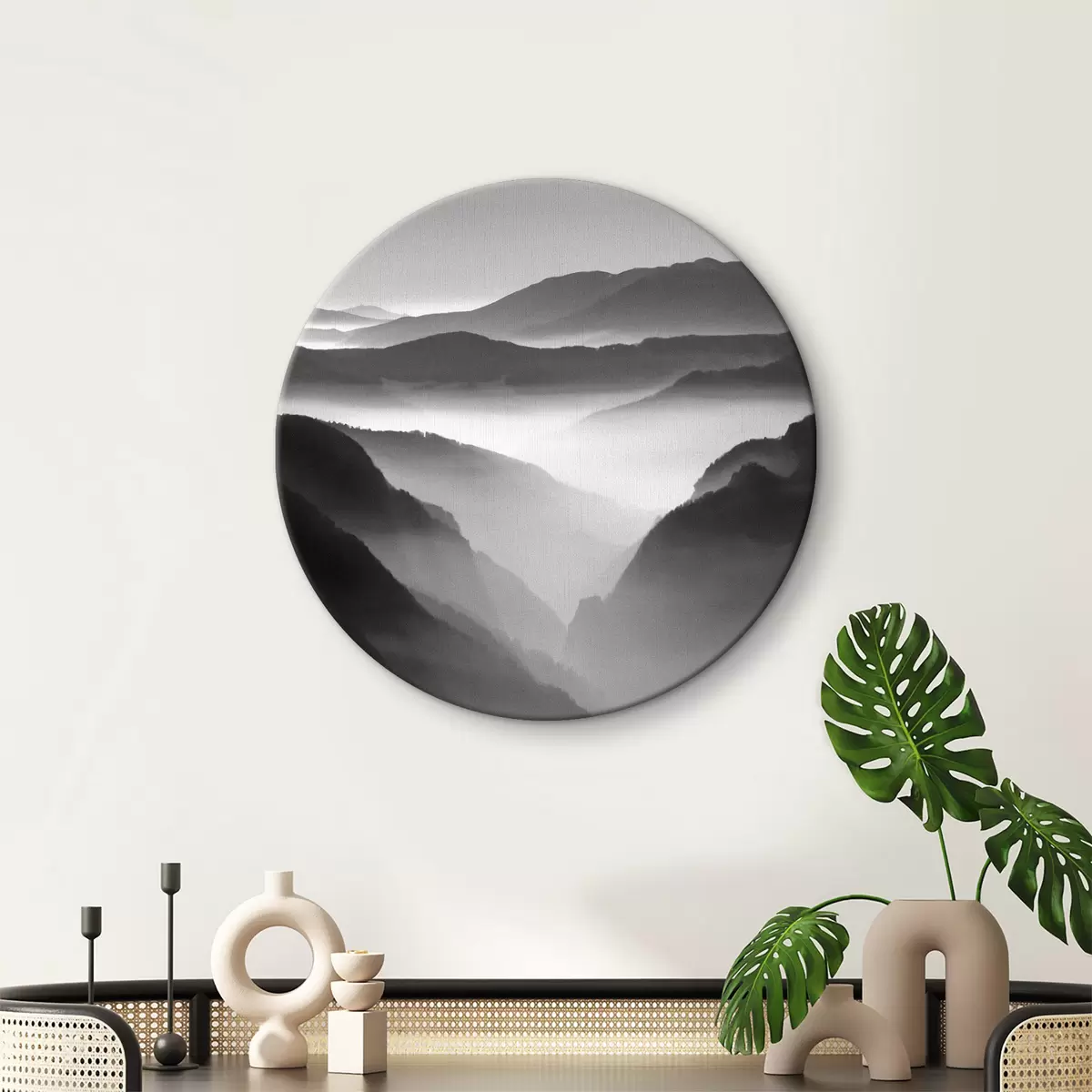 Ronde schilderijen Foto van bergen in zwart-wit r36845