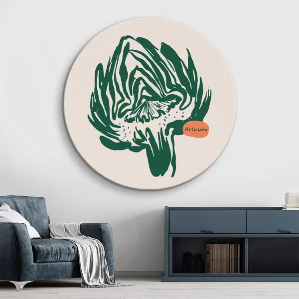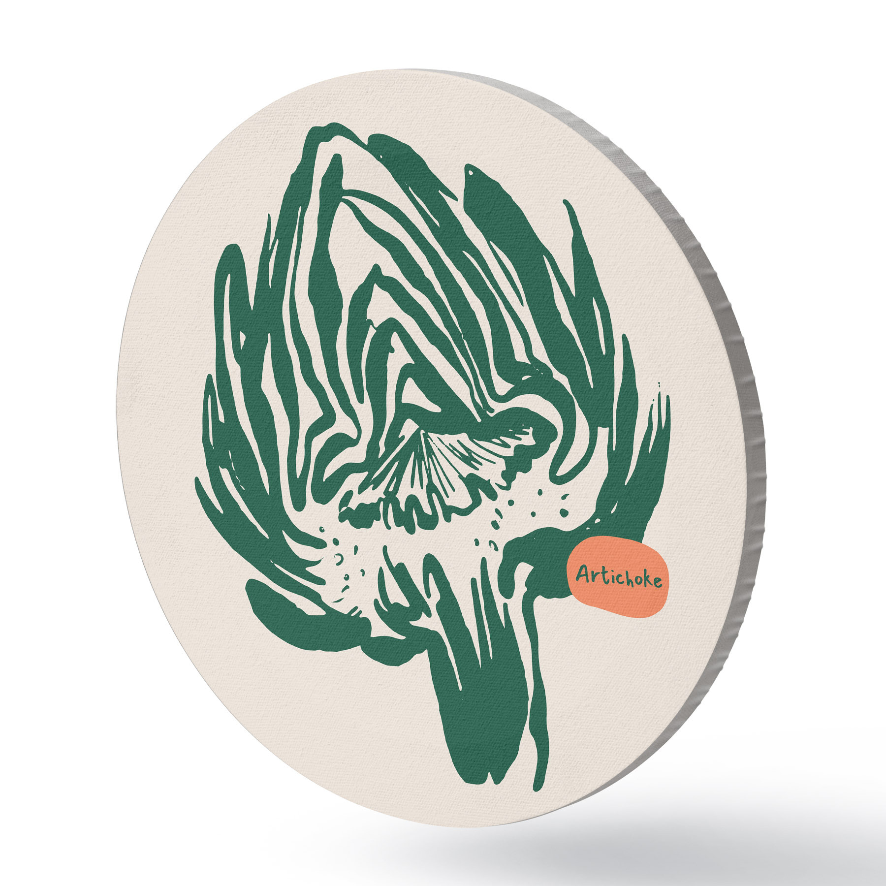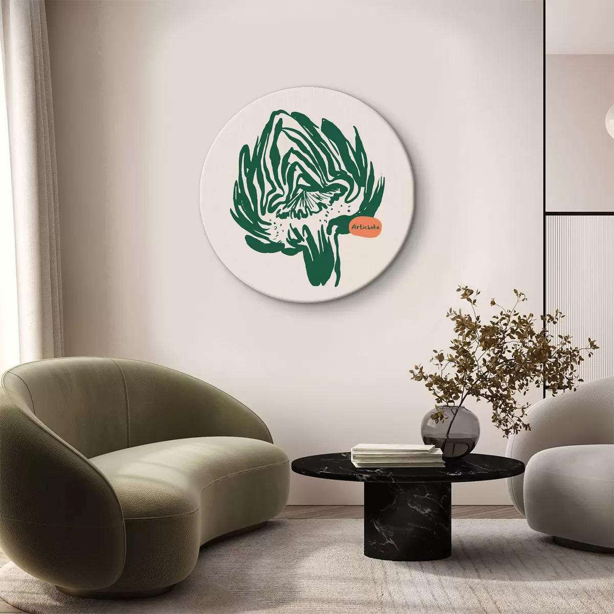 Ronde schilderijen Tekening van een plant in groen en wit r36868