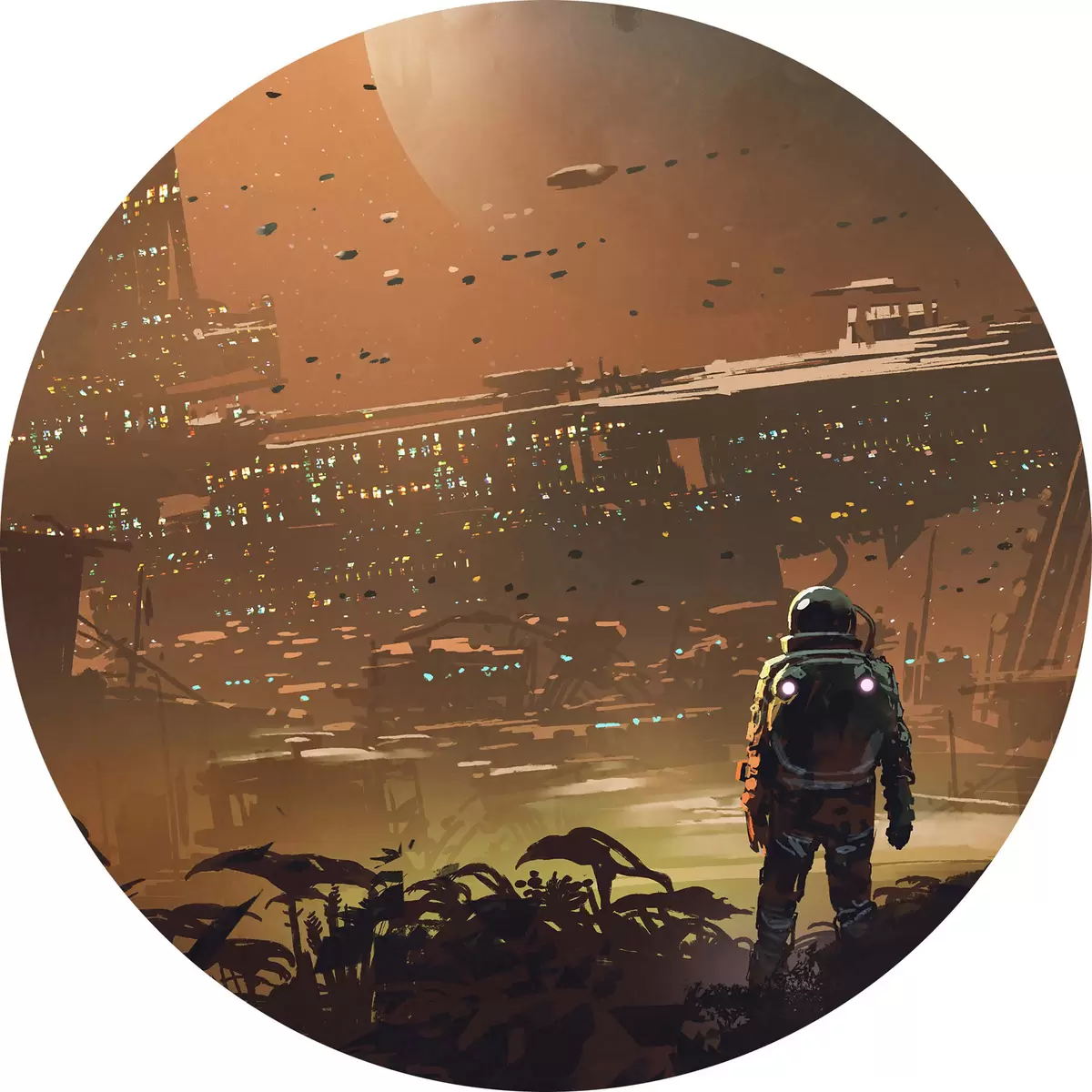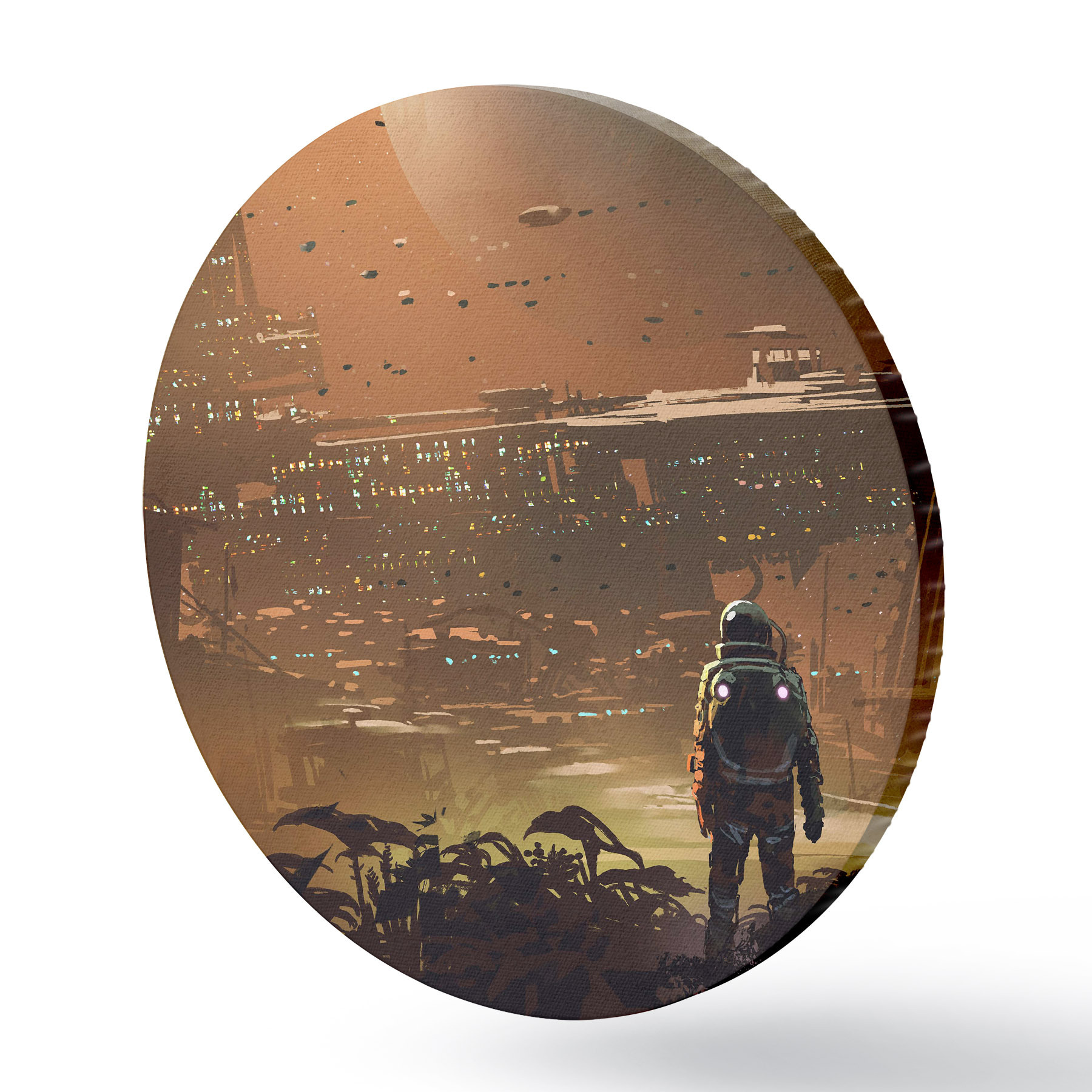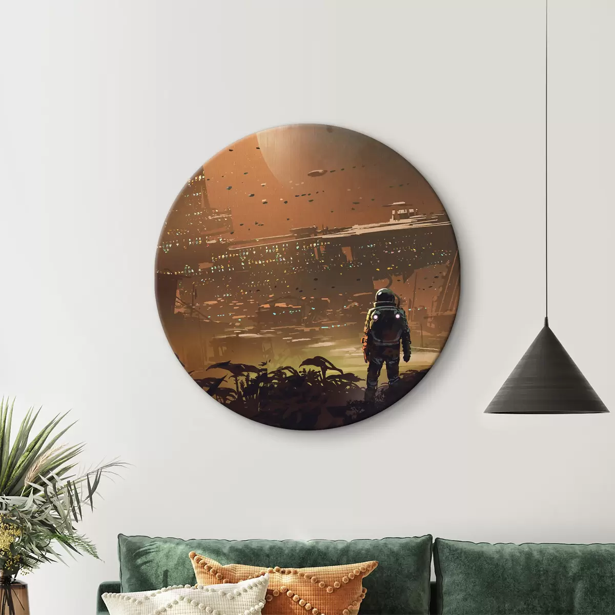 Ronde schilderijen Astronaut loopt rond in de stad r37083