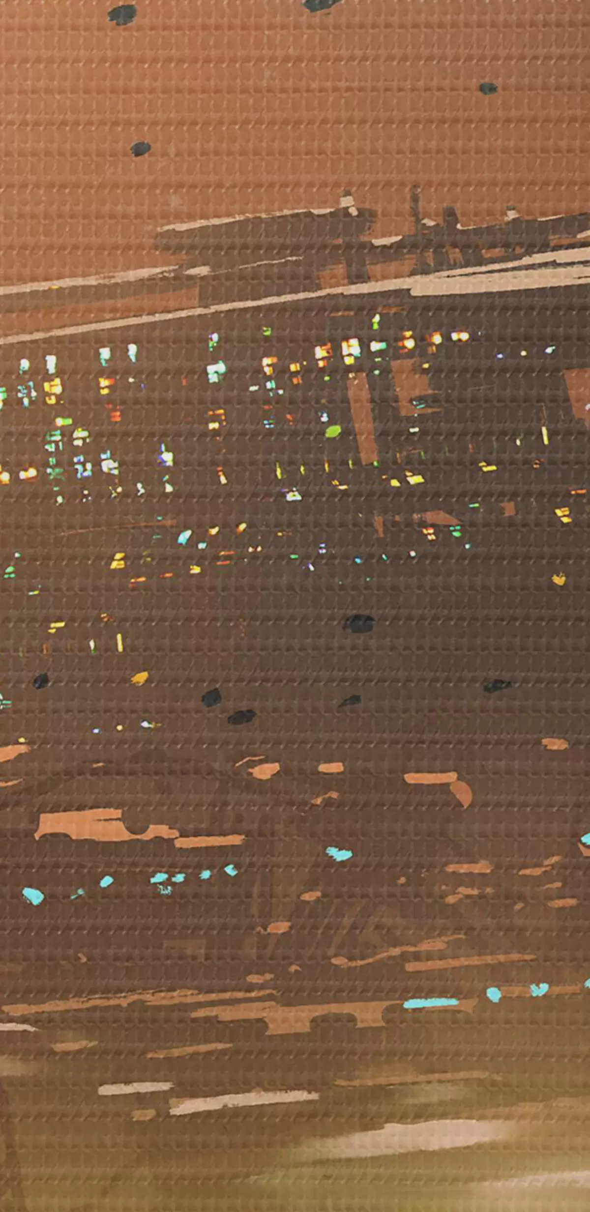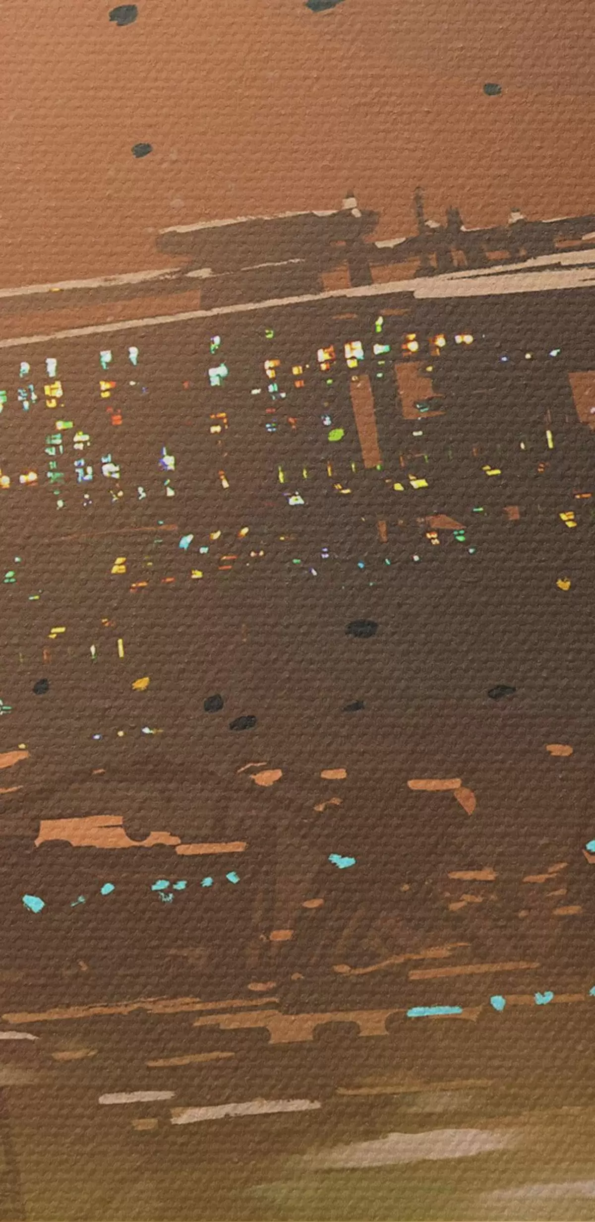 Het schilderij kan direct na ontvangst worden opgehangen. Het schilderij wordt opgespannen op een 2 cm breed houten spieraam.