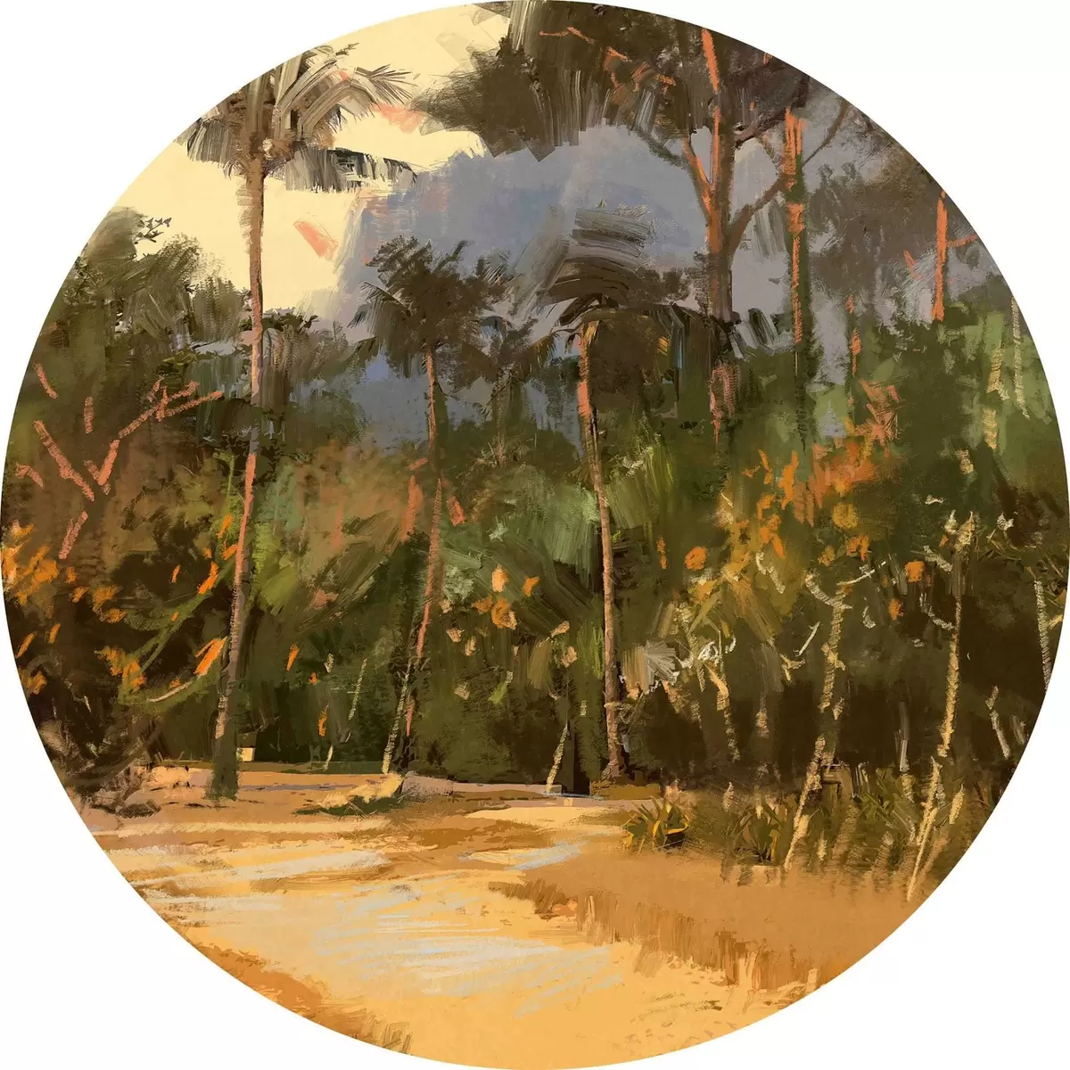 Ronde schilderijen Beeld van bomen en struiken r37091