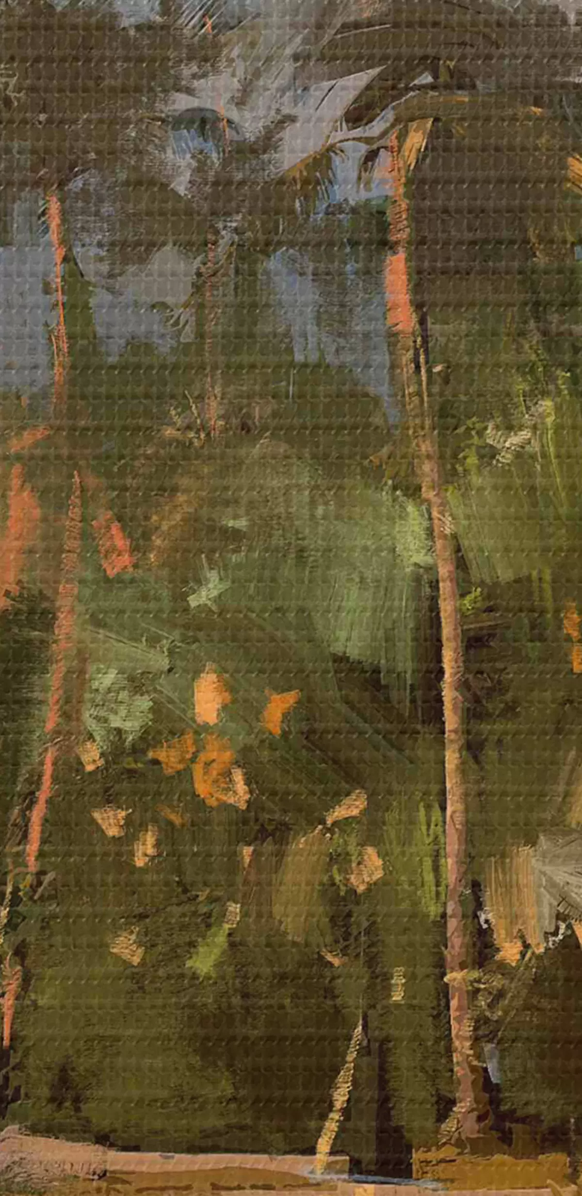 Het schilderij kan voorzichtig worden schoongeveegd met een droge zachte doek of spons; het wordt niet aanbevolen om natte producten te gebruiken. Het gebruik van een vochtige spons is alleen toegestaan als het schilderij gevernist is.