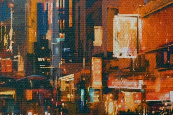 Afbeelding Stadsstraat met gebouwen en lichten Nr r37095