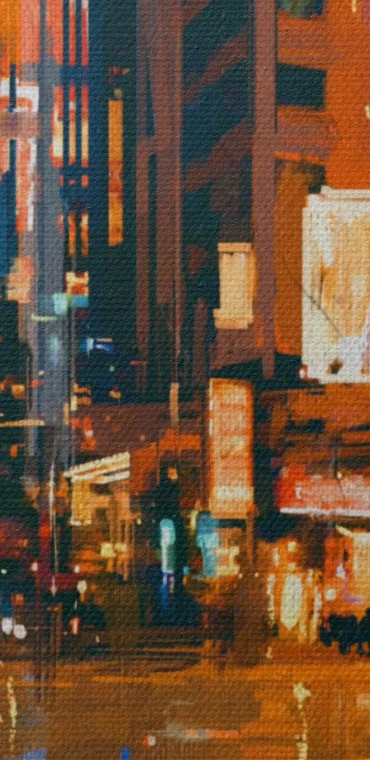 Het schilderij kan direct na ontvangst worden opgehangen. Het schilderij wordt opgespannen op een 2 cm breed houten spieraam.