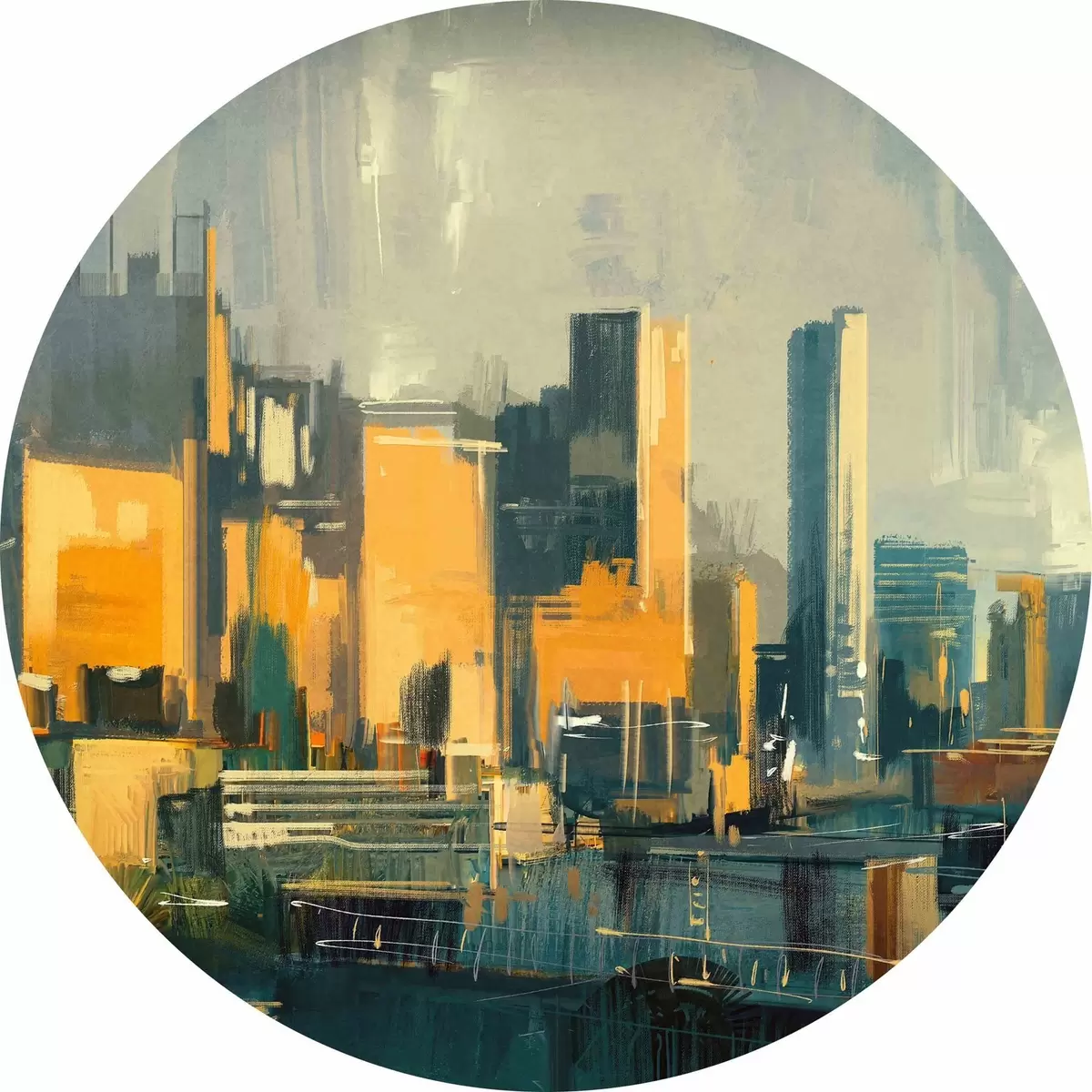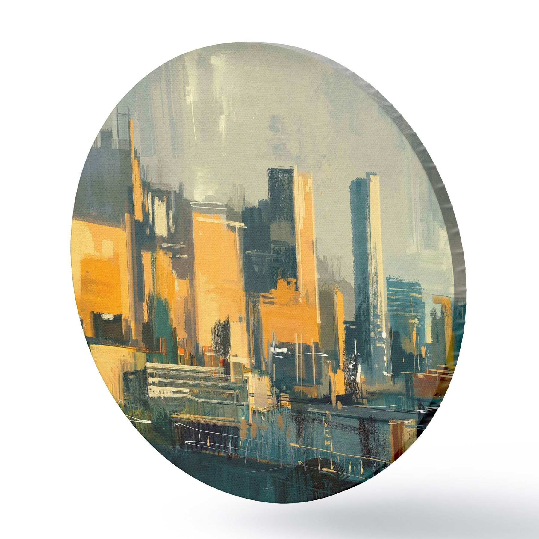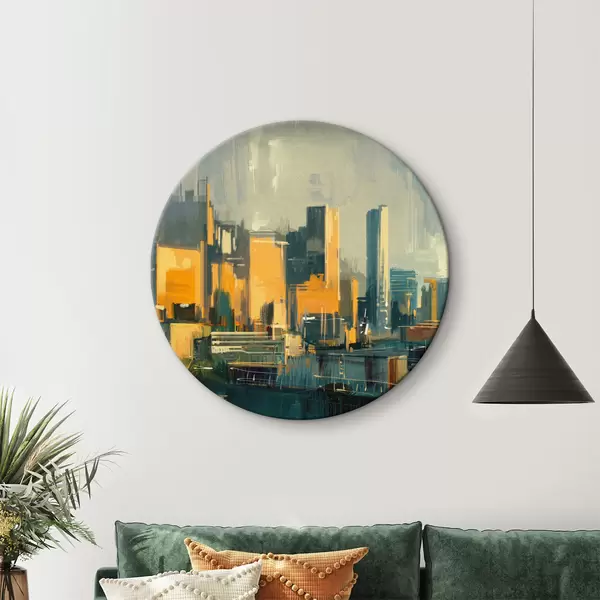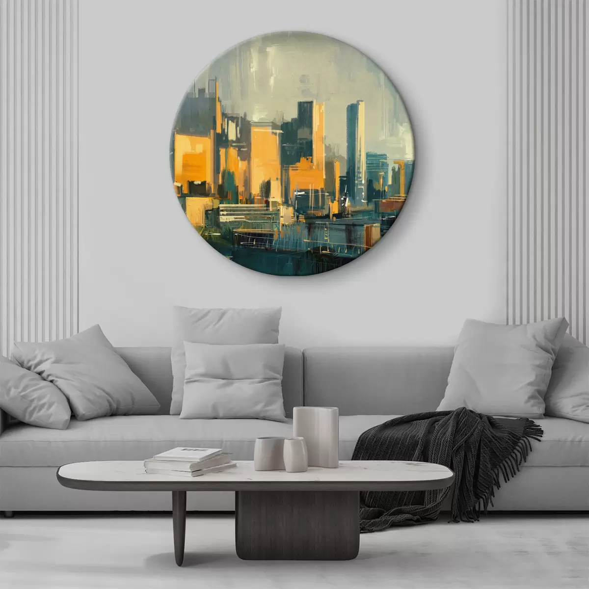 Ronde schilderijen Panorama van de stad met hoge gebouwen r37102