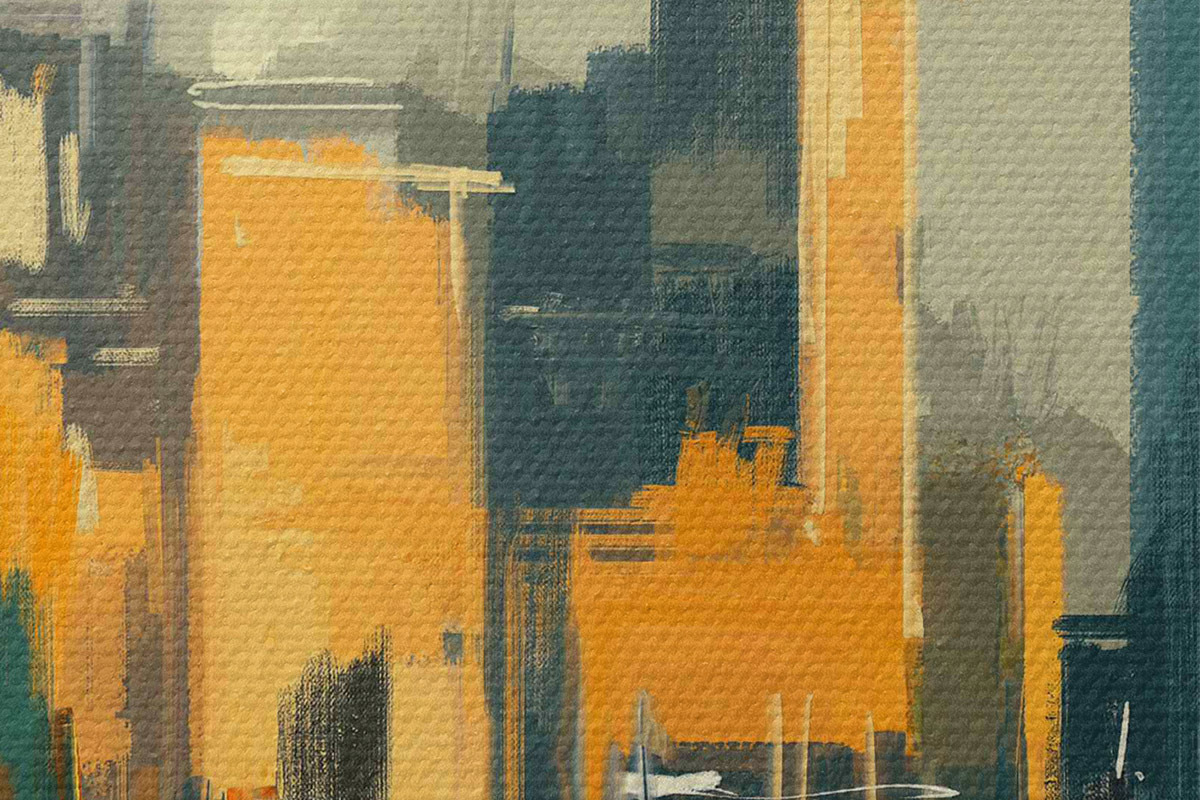 Het schilderij kan direct na ontvangst worden opgehangen. Het schilderij wordt opgespannen op een 2 cm breed houten spieraam.
