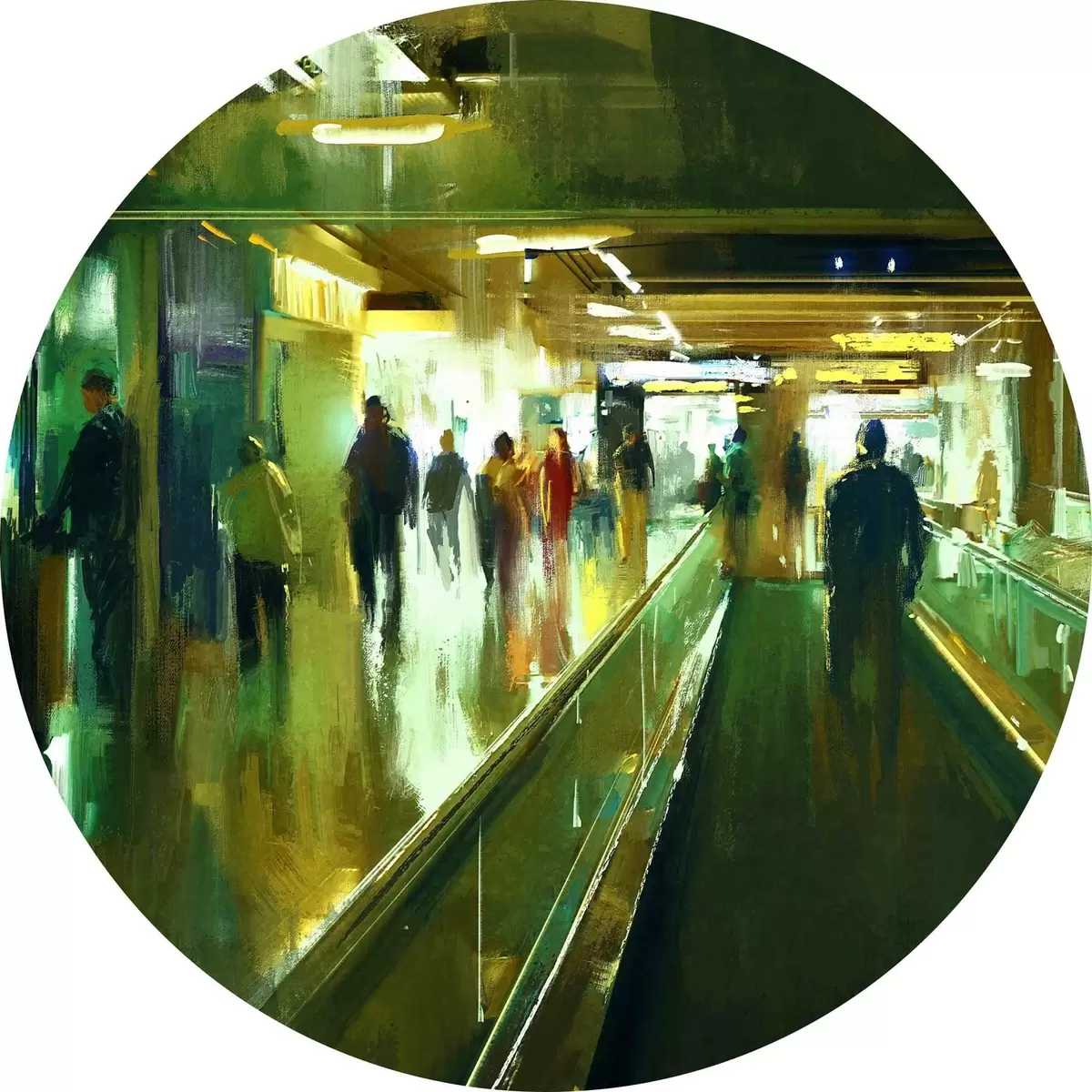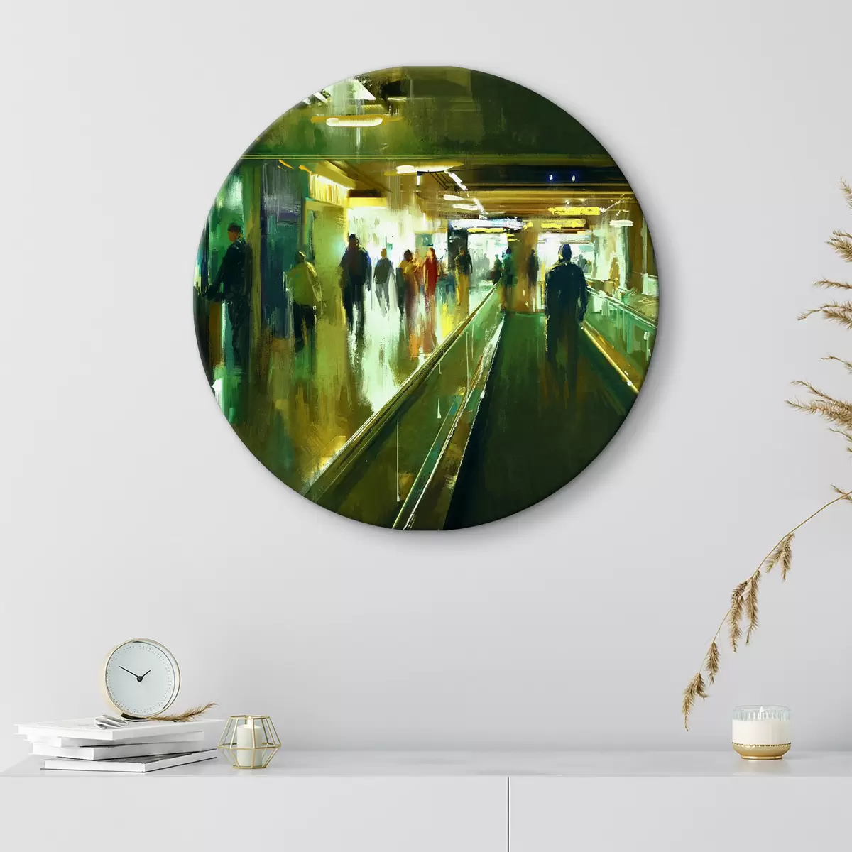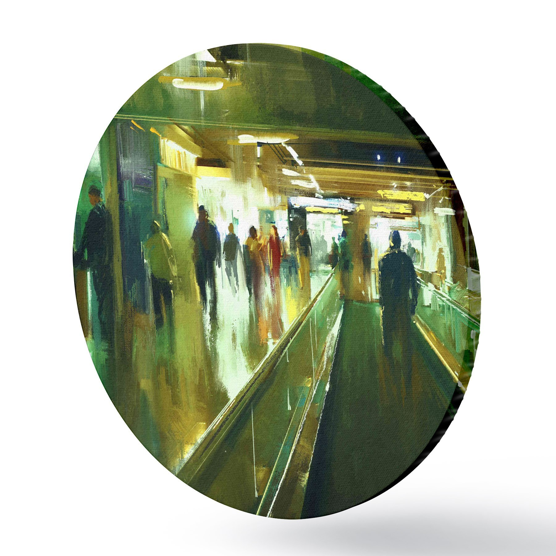 Ronde schilderijen Een groep mensen op een roltrap r37103