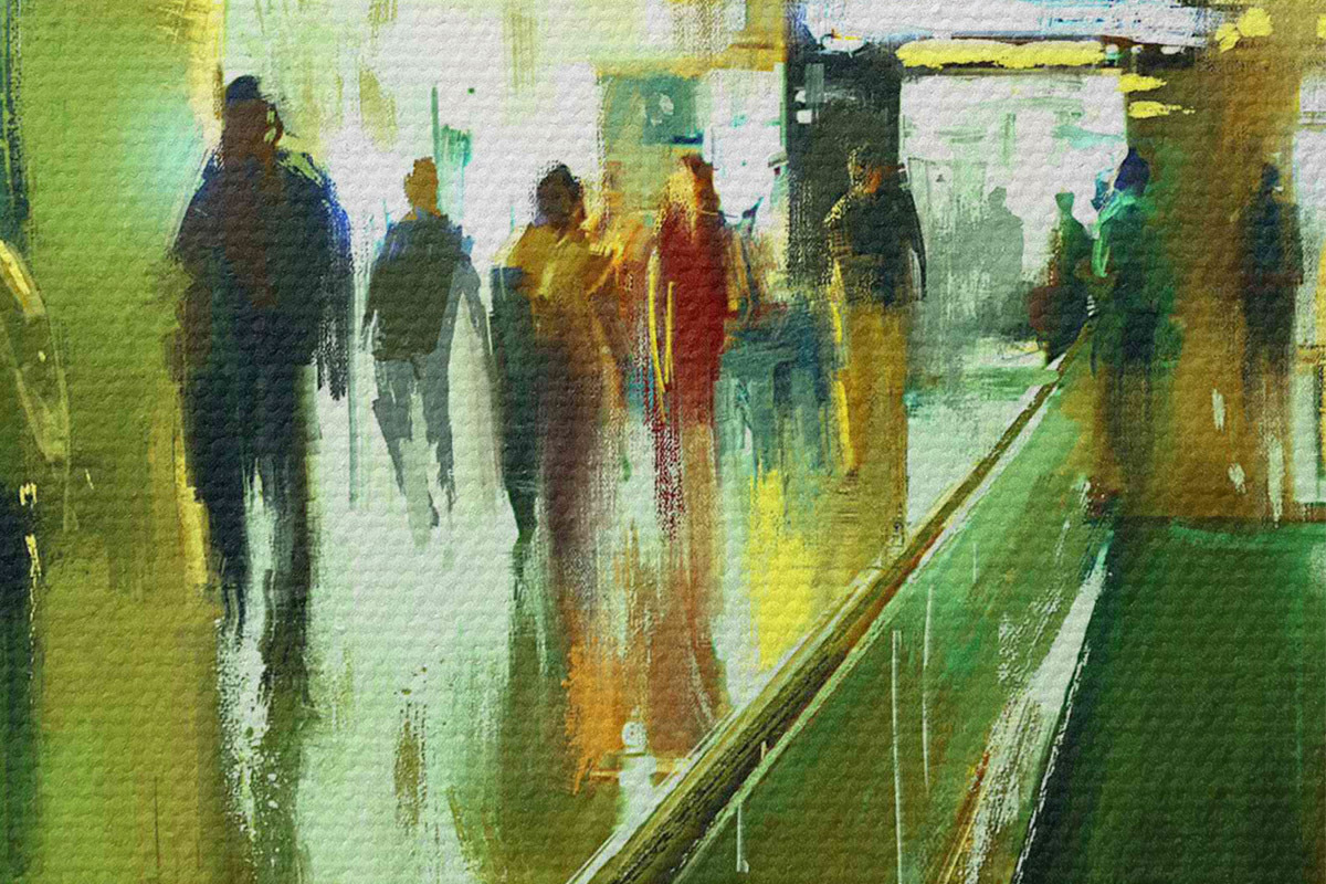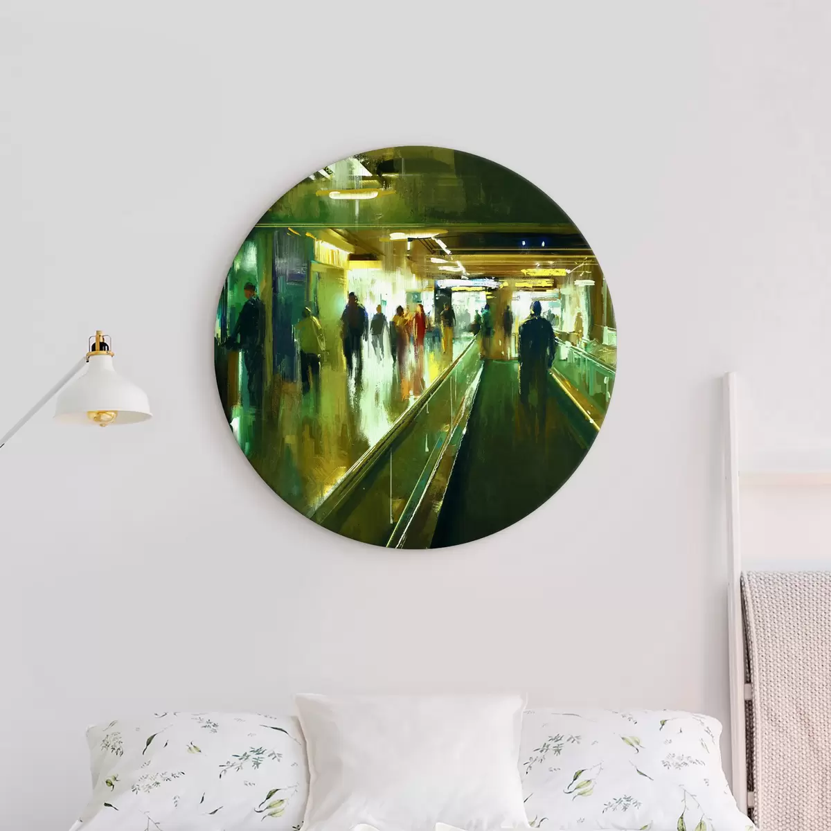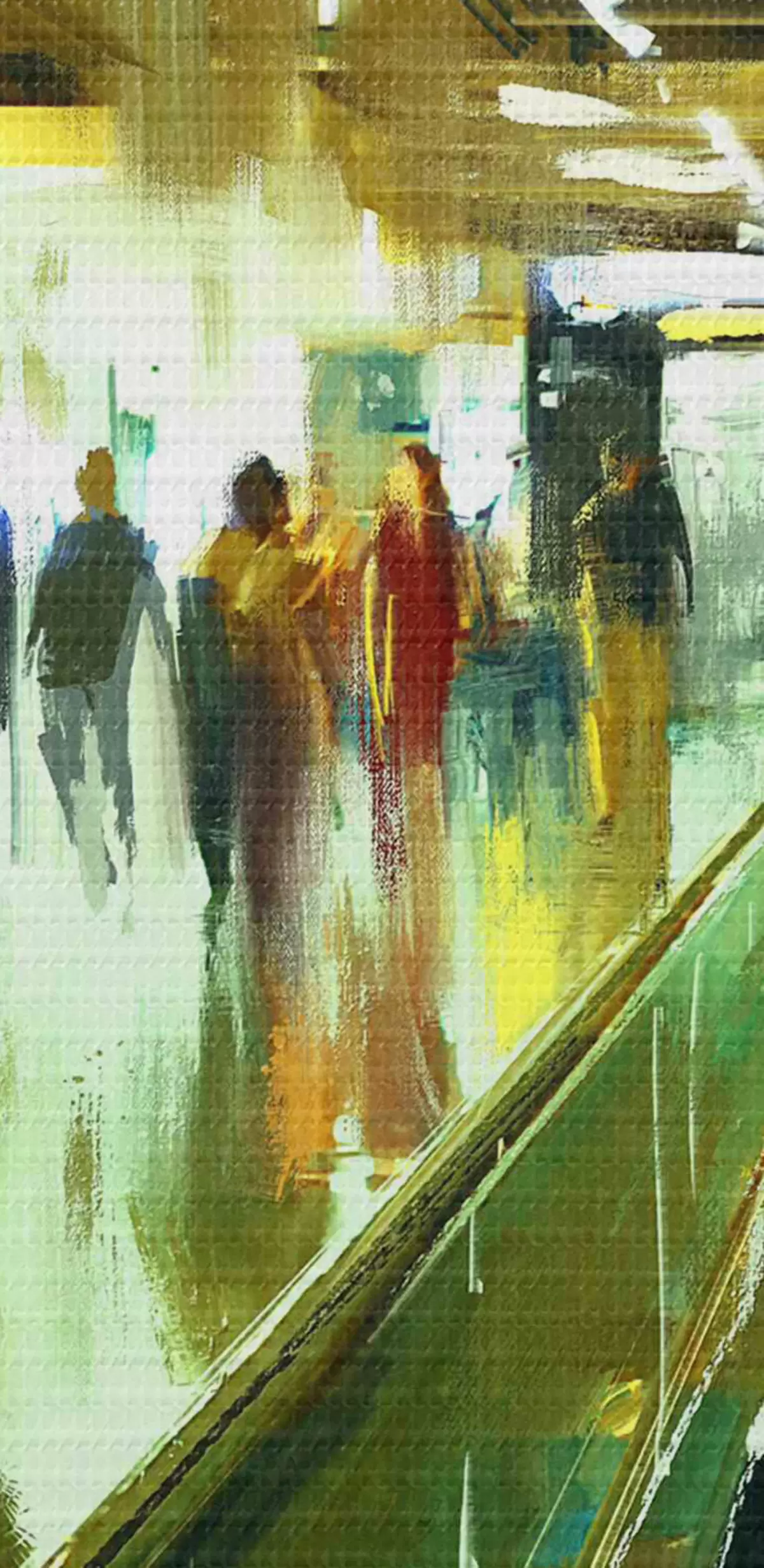 Ronde schilderijen Een groep mensen op een roltrap r37103