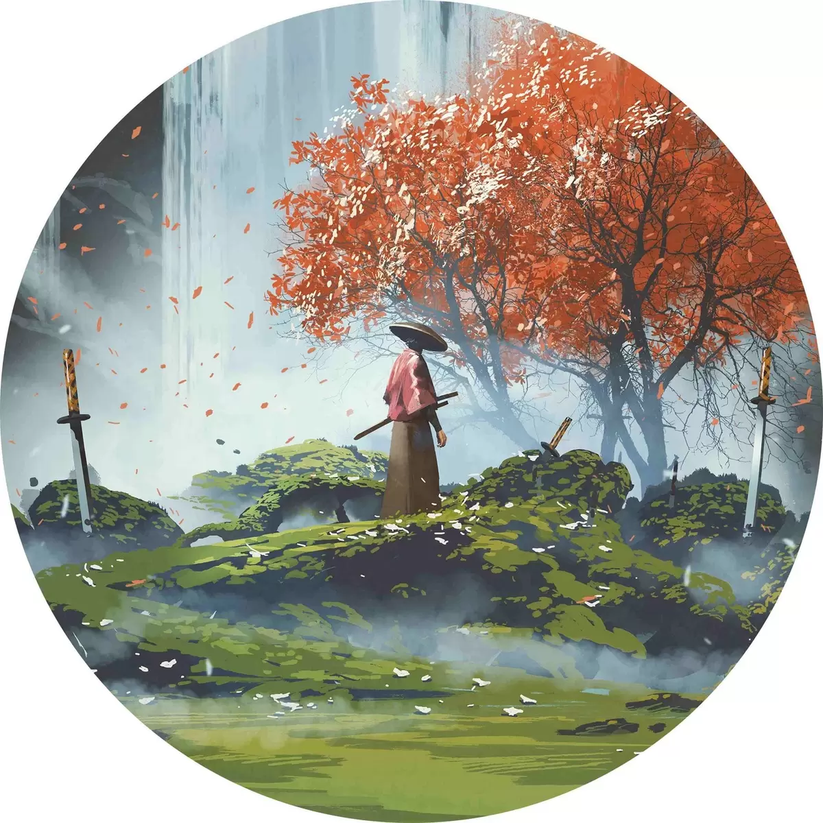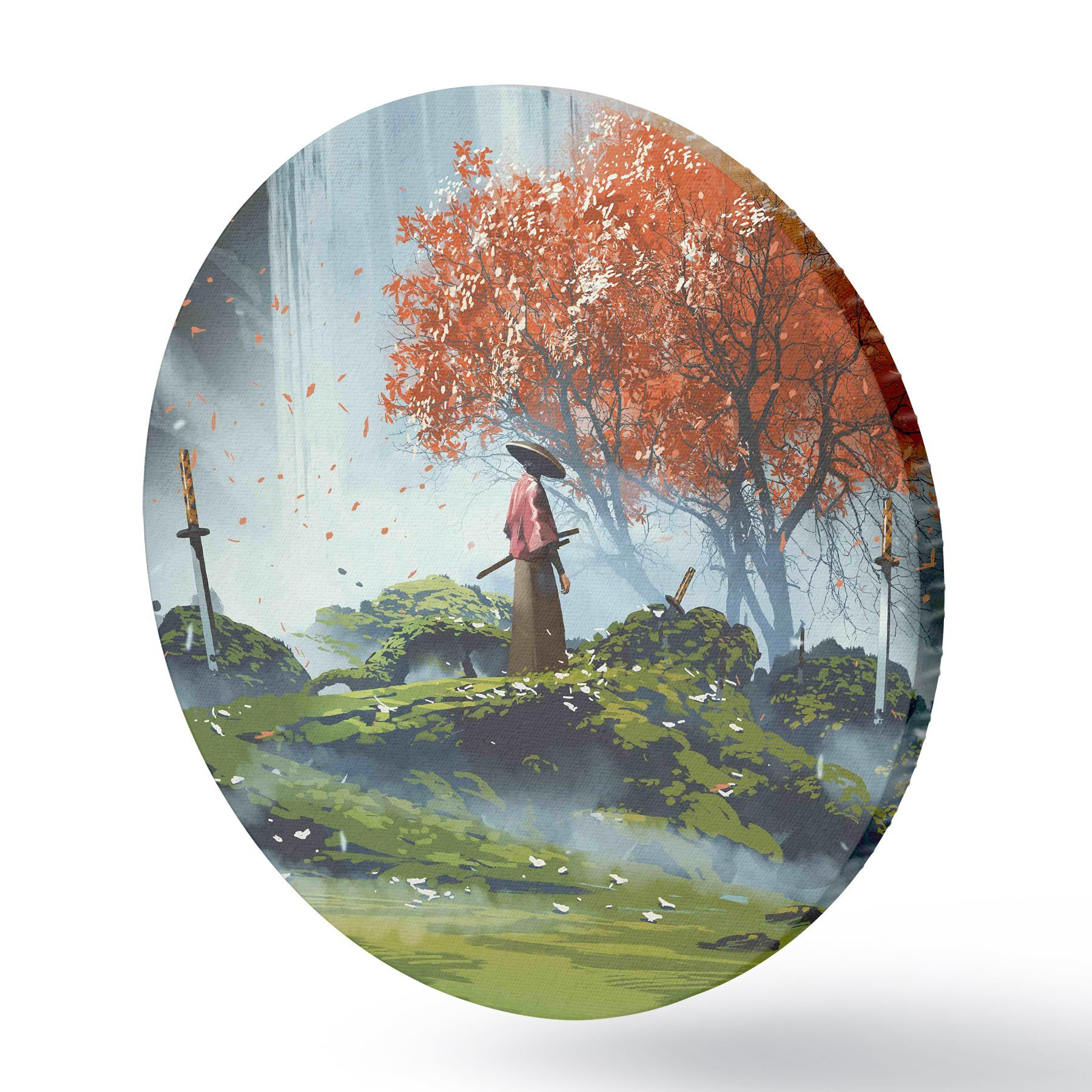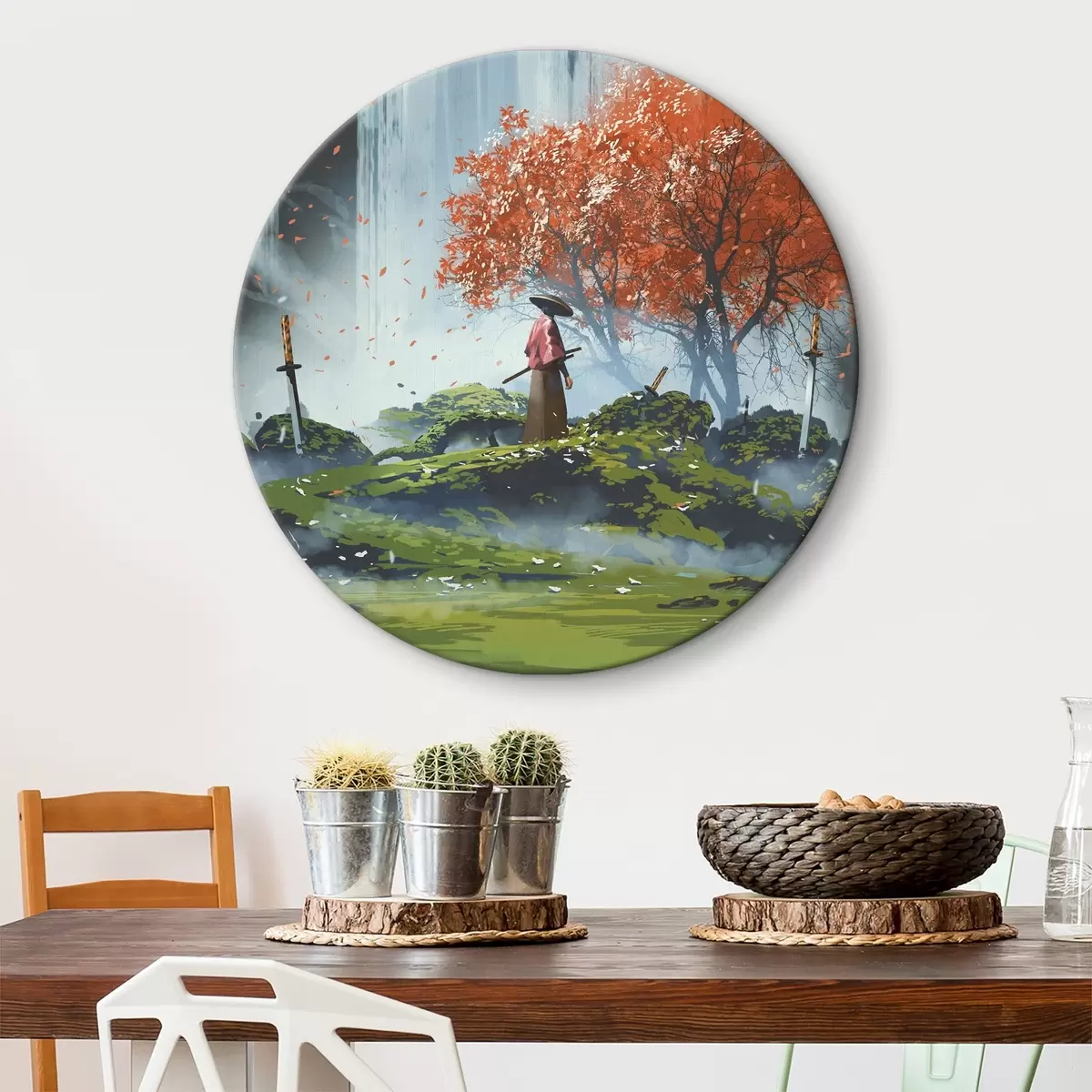 Ronde schilderijen Een eenzame Japanse samoerai r37105
