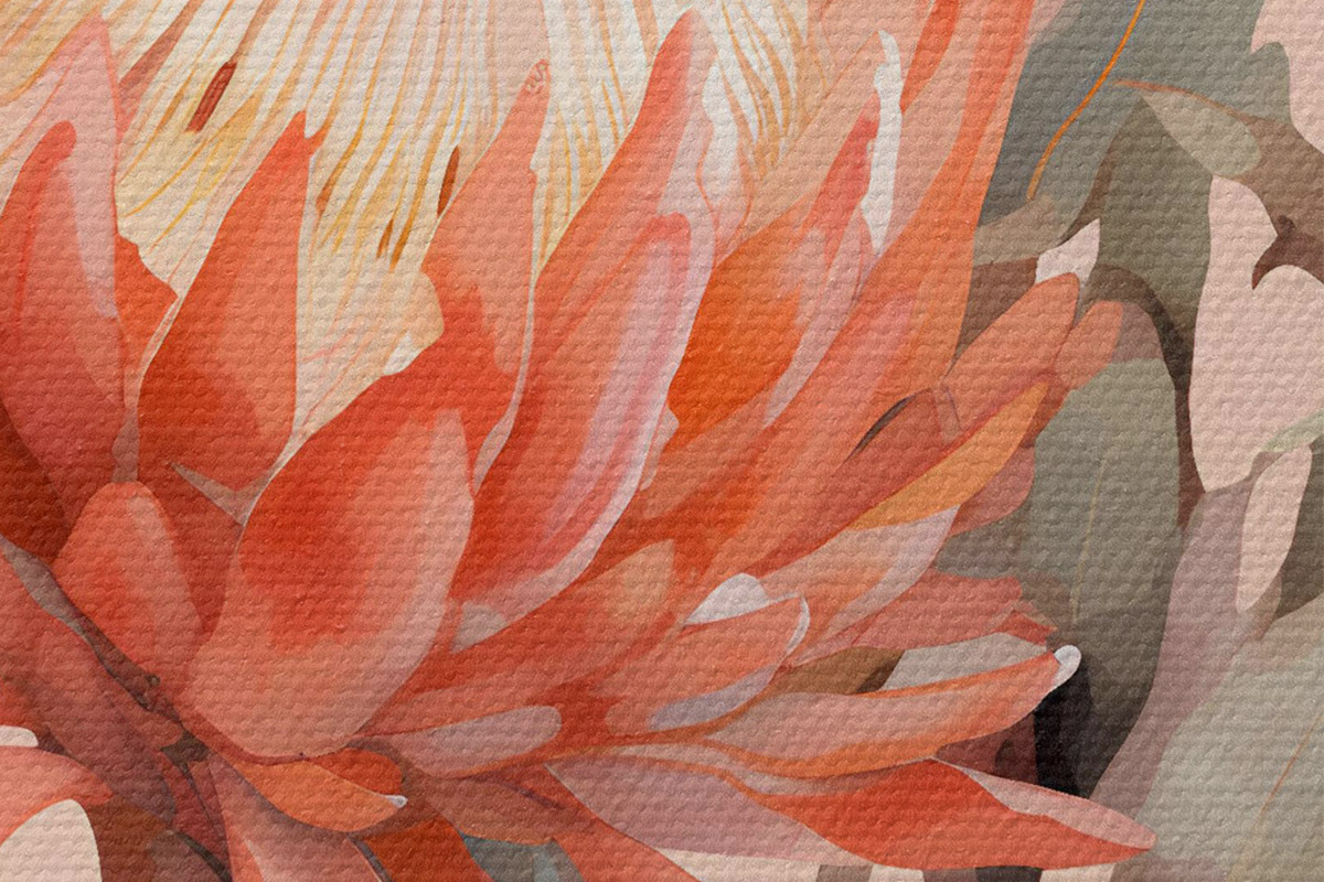 Er zijn drie soorten materiaal te bestellen: Economic Canvas - een dicht en duurzaam materiaal voor digitaal printen, identiek aan schildersdoek, waterdicht oppervlak, realistische weergave van details, materiaal met gemiddelde korrel. Premium Canvas - de textuur lijkt op die van schildersdoek (verweven kleine draden). Zachte, gedetailleerde reproductie van de afbeelding op een mat oppervlak. Eco-Premium - hoogwaardige 100% katoenen stof. Dankzij de natuurlijke katoenvezels is het materiaal duurzaam en slijtvast. Uitstekende kleurweergave en detail.