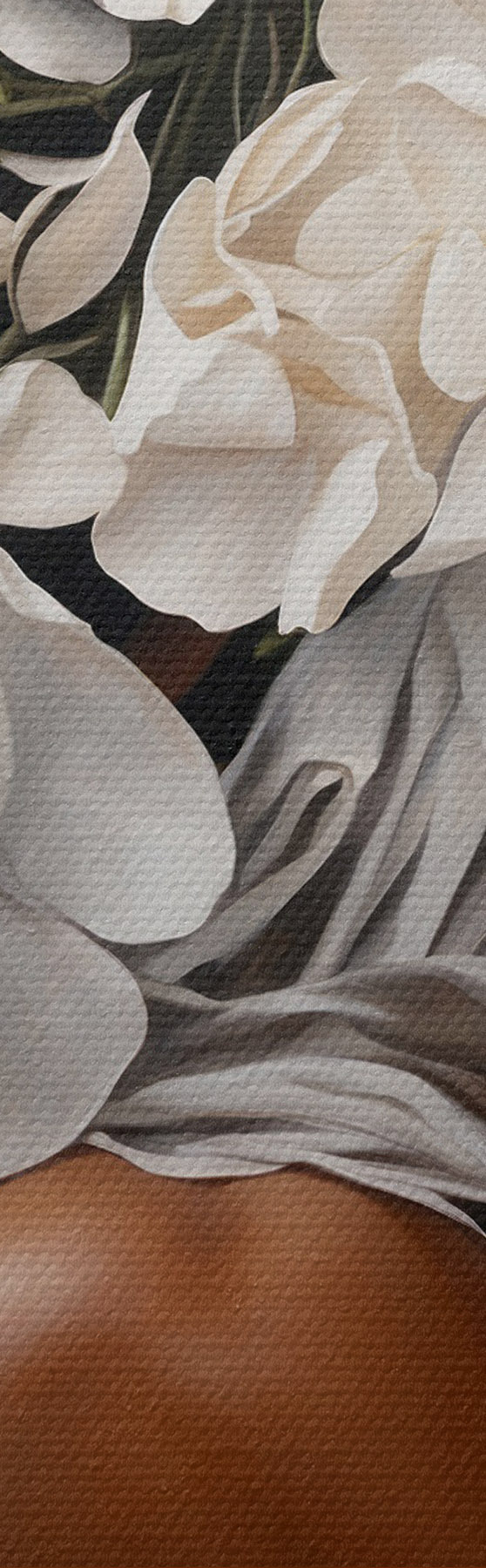 Afbeelding Vrouw met witte bloemen op zwarte achtergrond Nr r37163