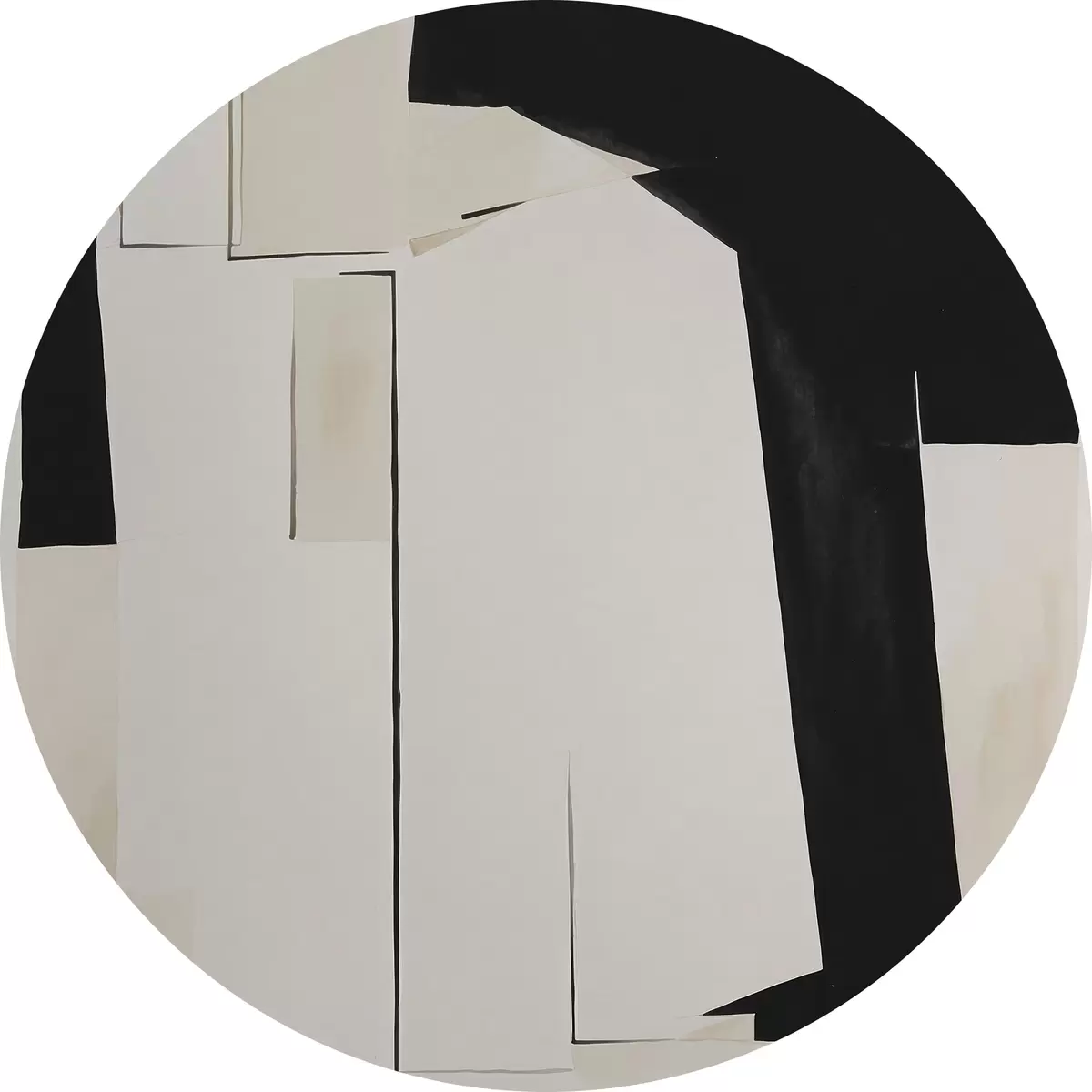 Ronde schilderijen Zwart-wit aquarel abstractie r37169