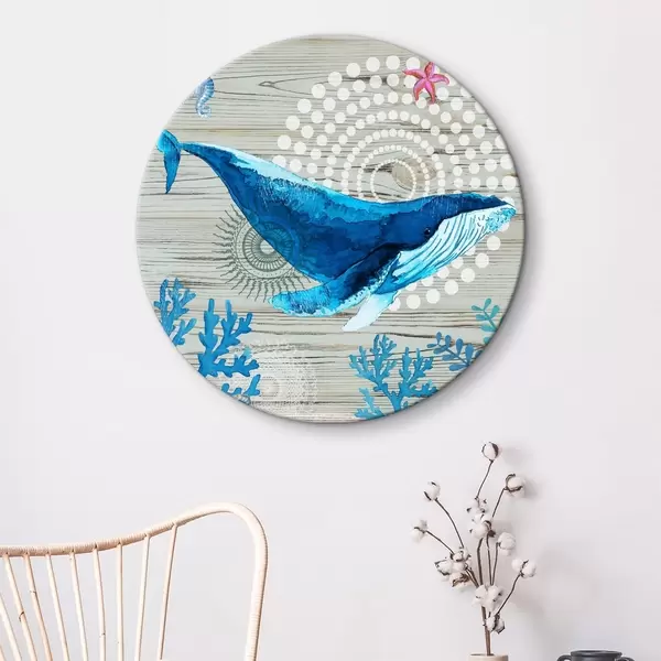 Ronde schilderijen Nautische abstractie met een walvis r37241