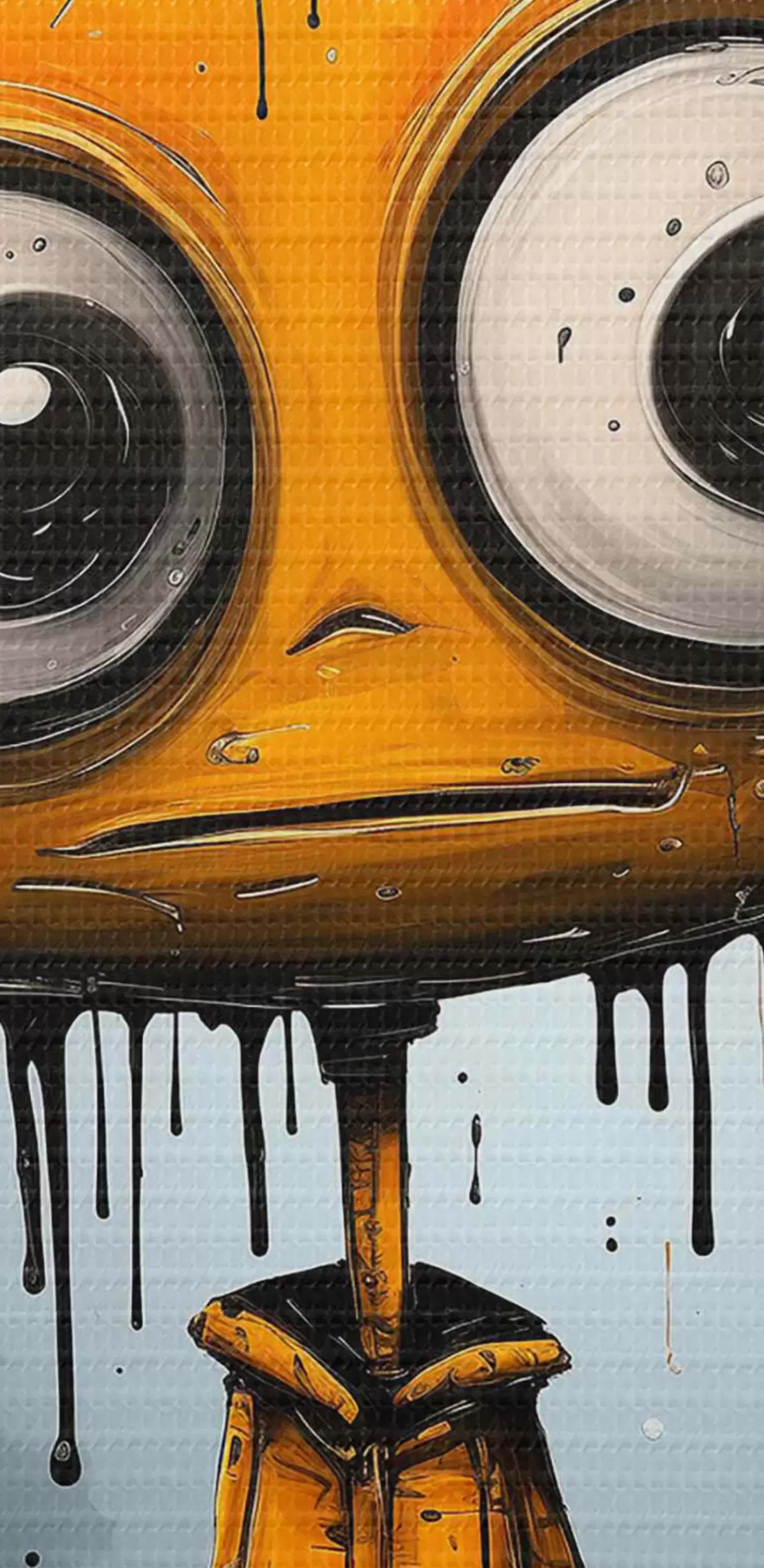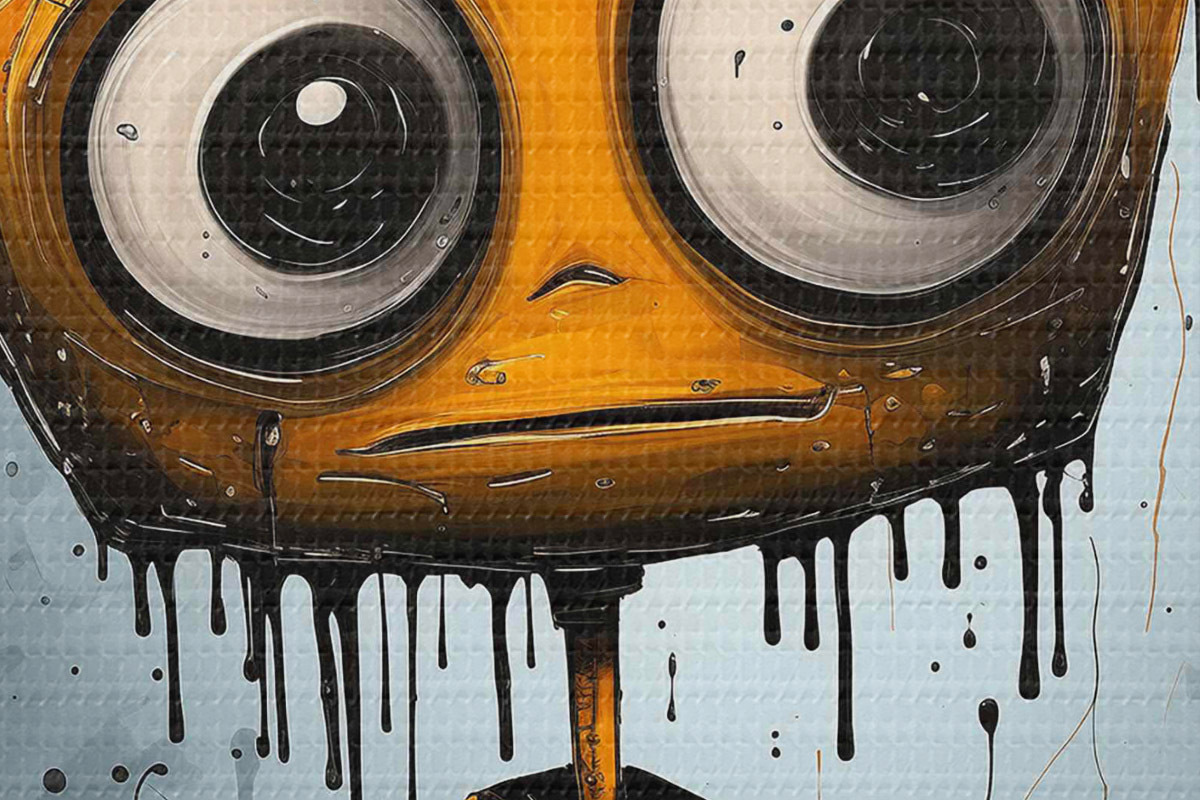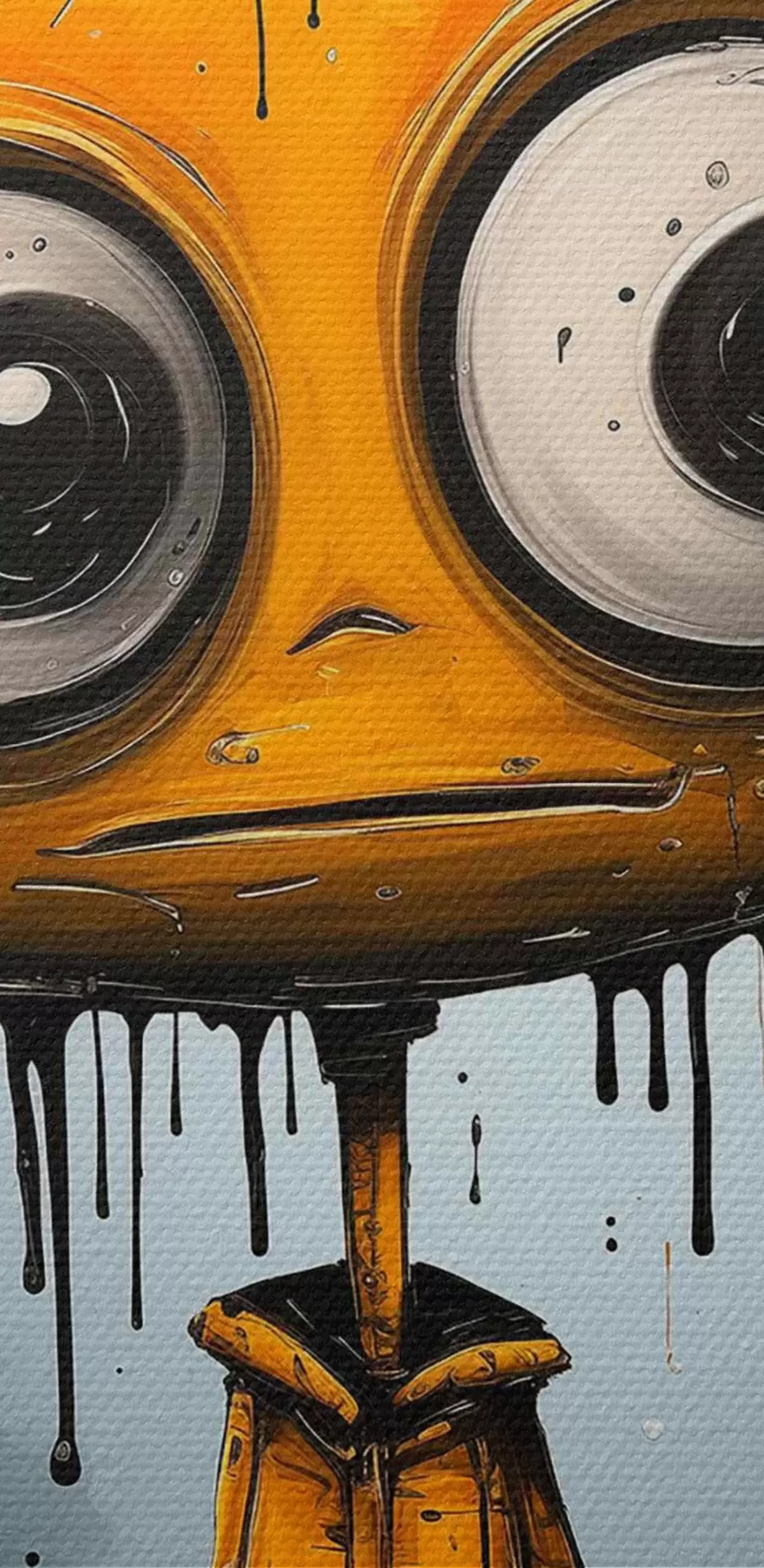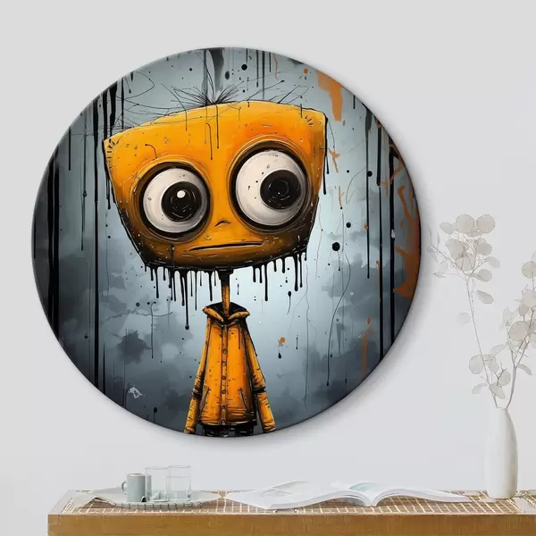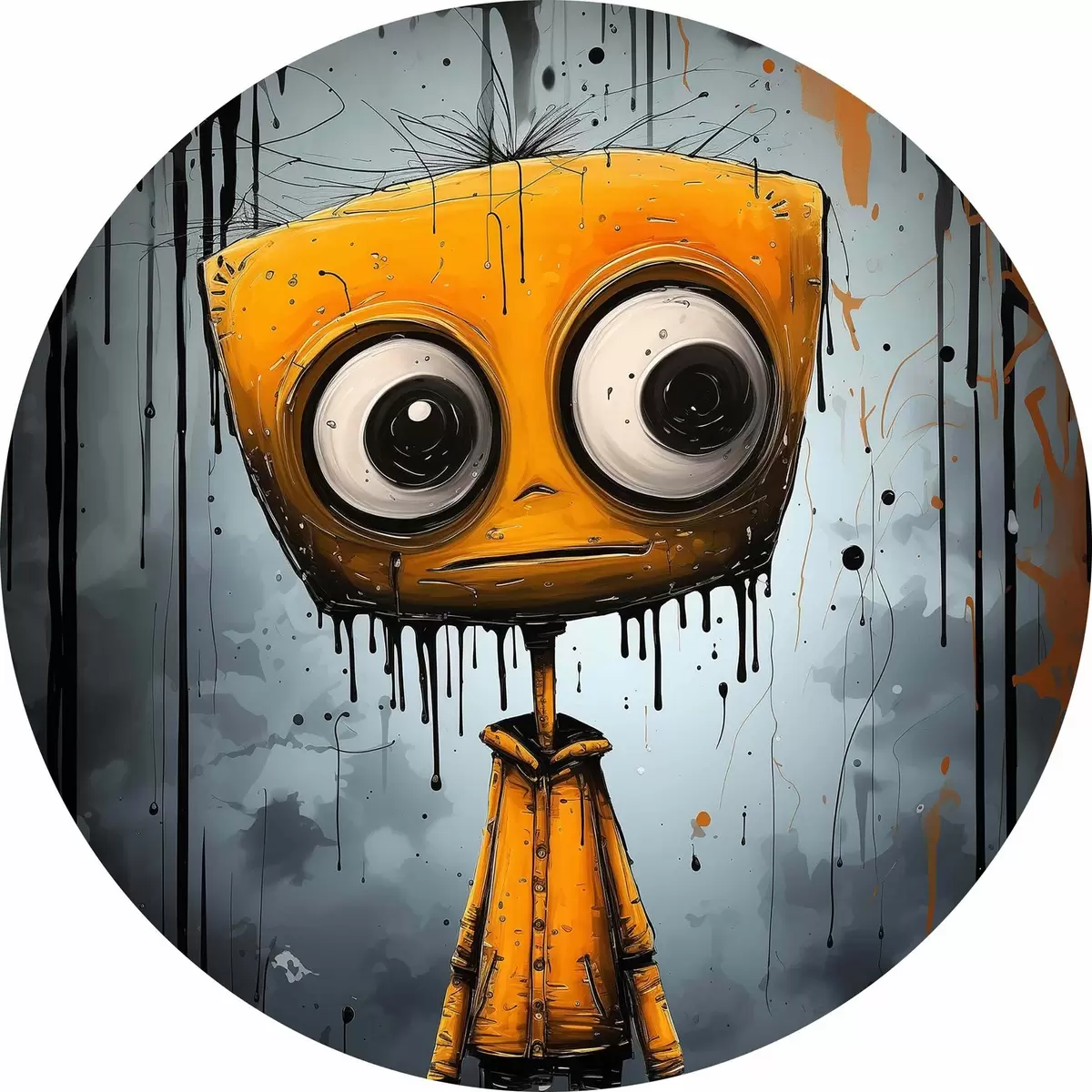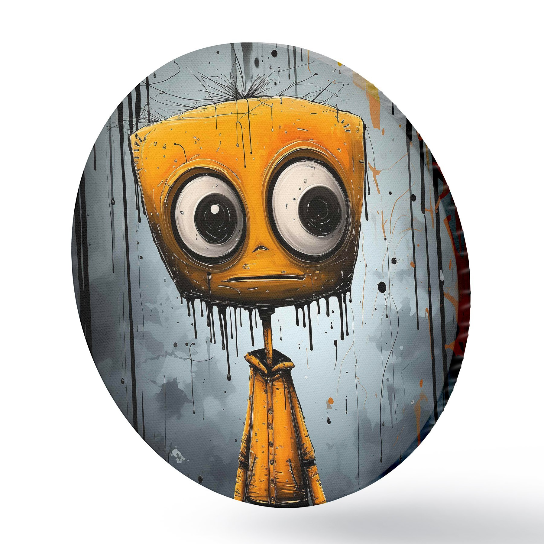Ronde schilderijen Stripfiguur met vierkant hoofd en grote ogen r37254